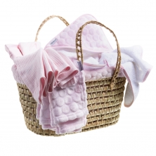 Our bundles come in two forms; nestled in a sturdy Moses basket or in a compact gift bag. These collections include blankets, towels and cloths which are all made from soft materials. They are not only a gift for a baby girl, who will love the comforting feeling that these luxurious fabrics offer, but also a new parent who will be grateful for having more items close to hand when the washing basket is filling up!