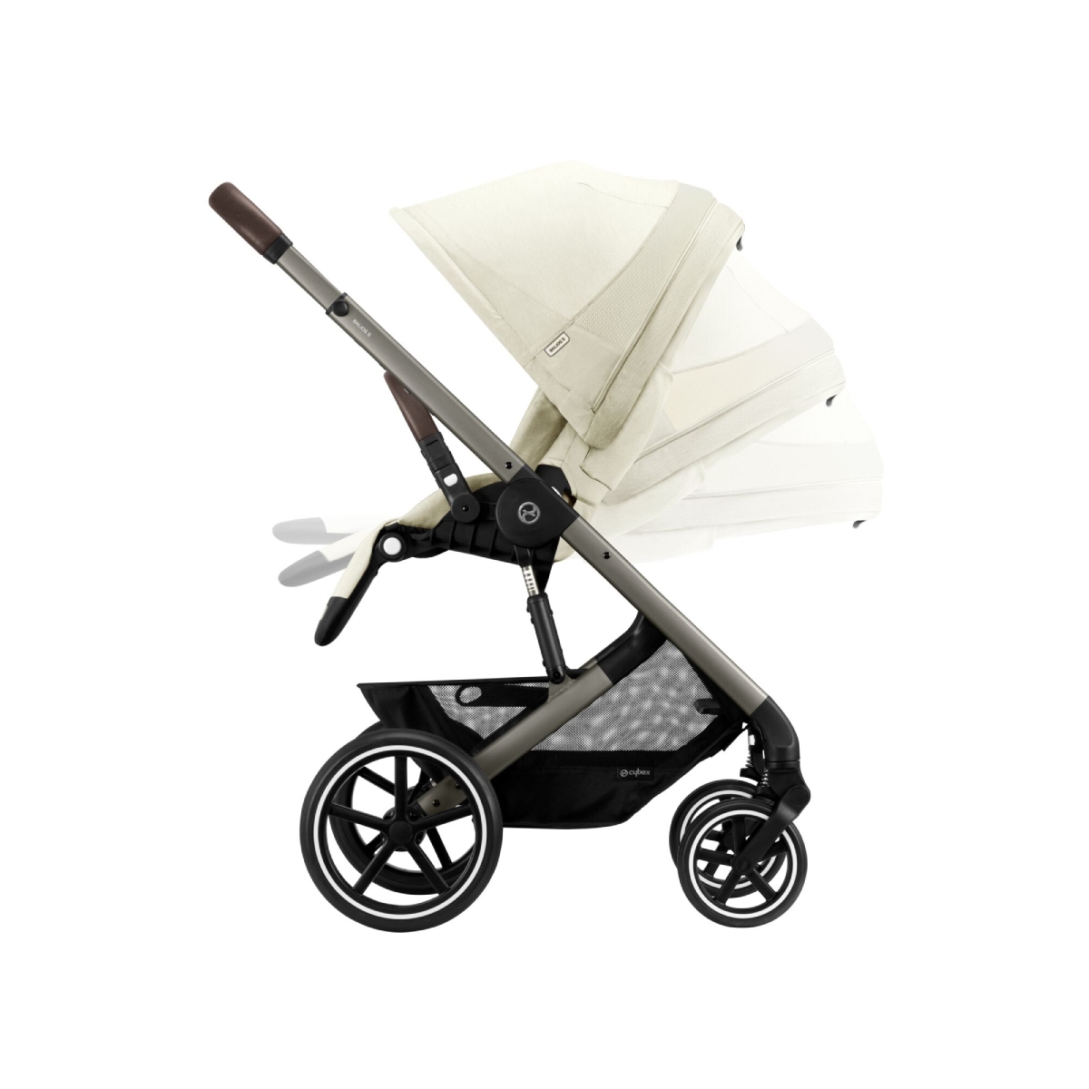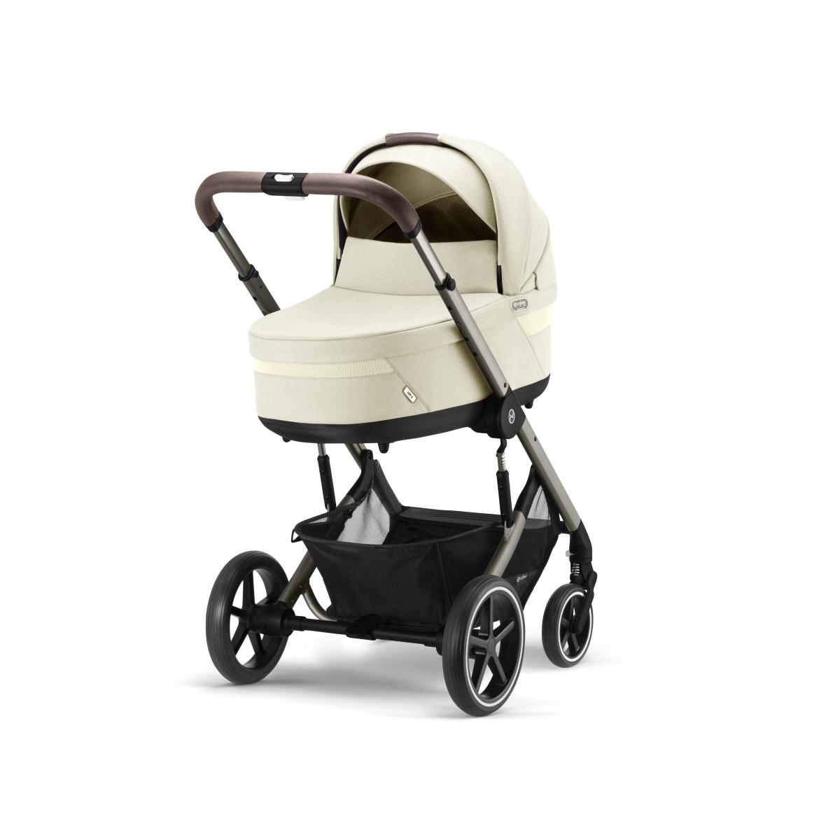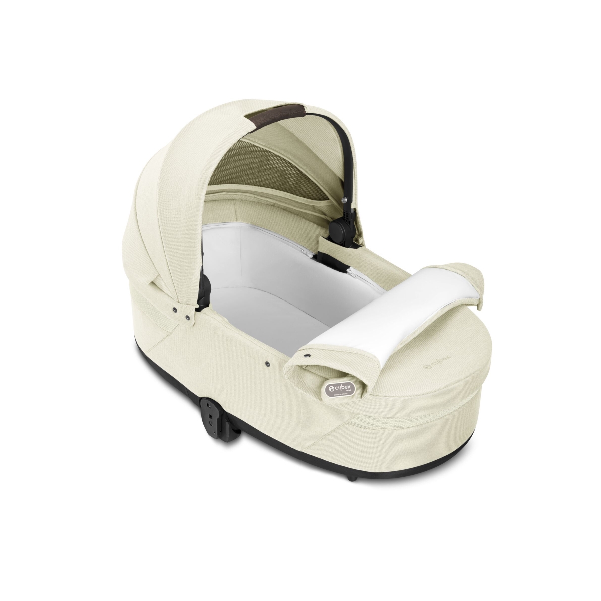 Simply click the carrycot to the Cybex Balios S Lux or Talos S Lux pushchair frame and you’re ready to go, removing the carrycot from the frame is just as easy using the memory buttons and integrated carrying handle.
