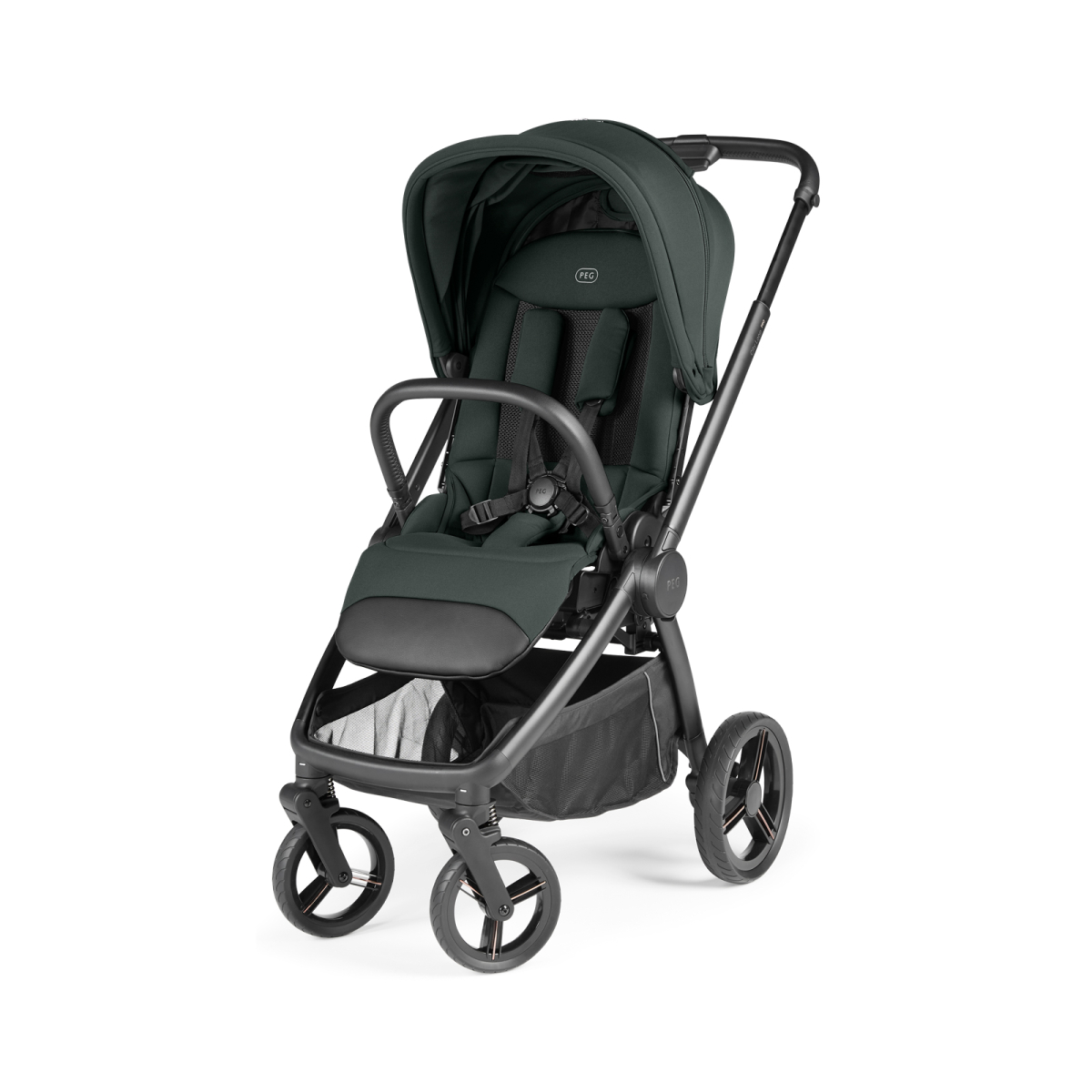 Ride smoothly on any surface with top-quality wheels and front suspension, designed to handle both city streets and light off-road paths. The stroller includes a 5-point safety harness, UPF 50+ extendable canopy, and reflective trims for added visibility and security. A spacious under-seat basket provides practicality for shopping or carrying daily essentials, and it is fully compatible with Peg Perego carrycots and car seats for a complete travel system.