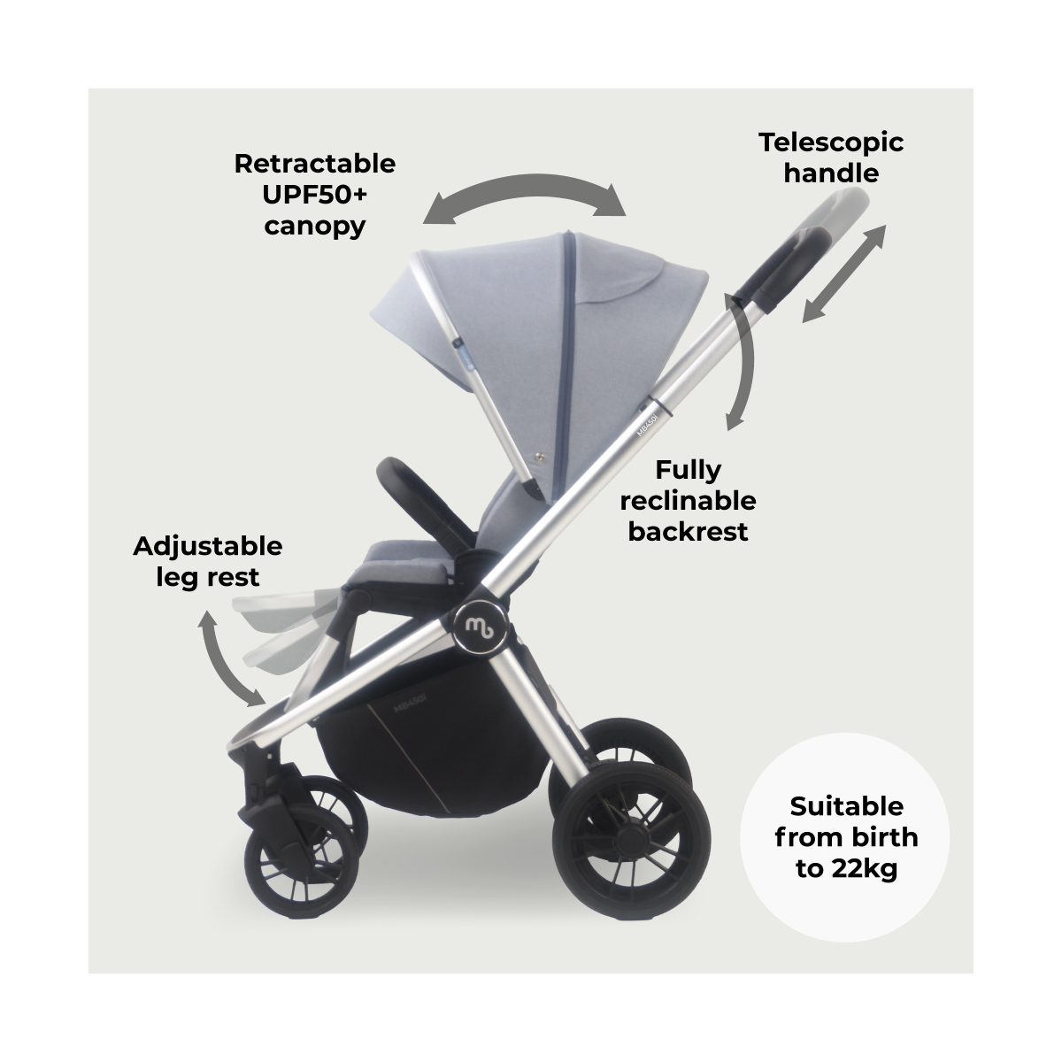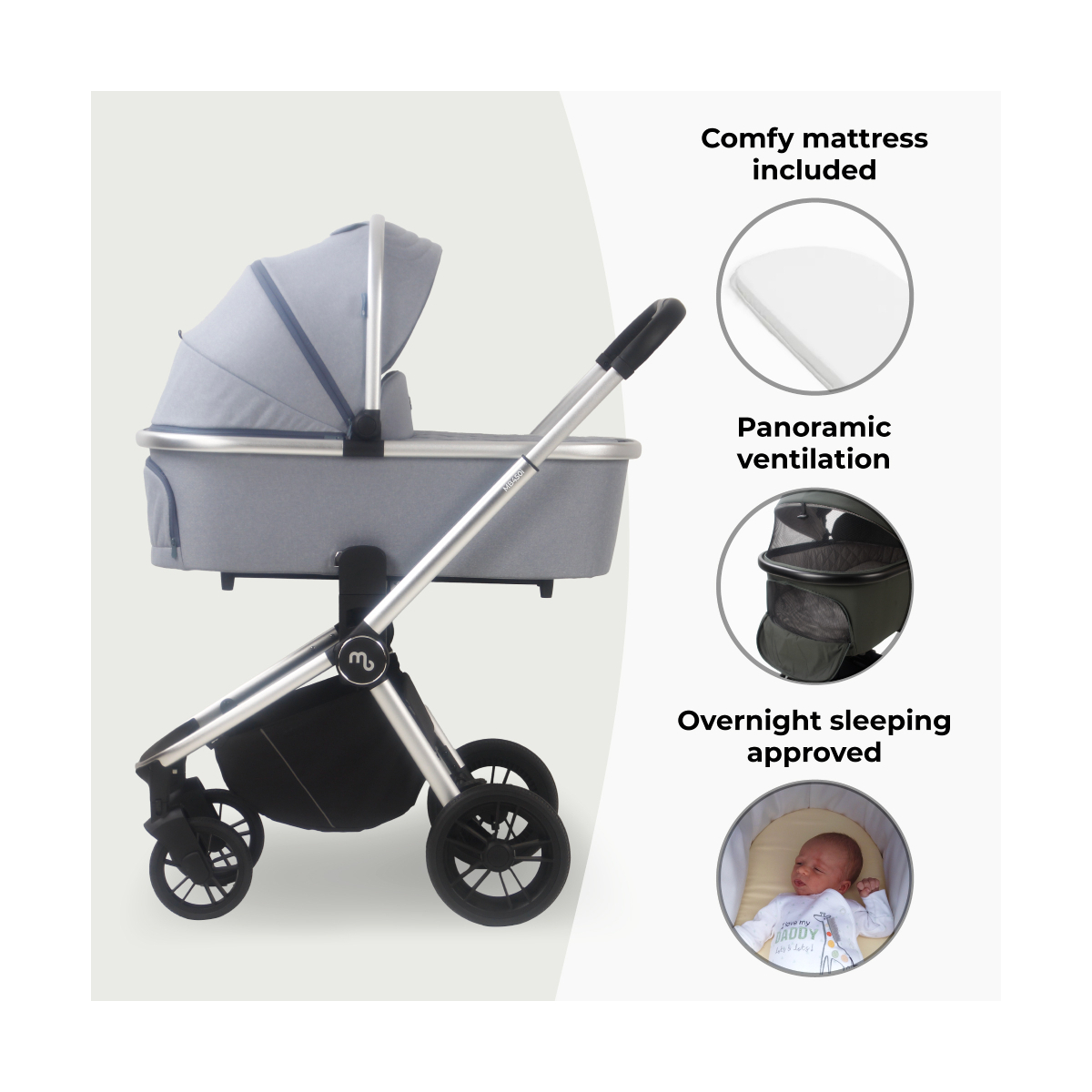 The included carrycot in the MB450 3-in-1 travel system provides a comfy place for your newborn to sleep whilst you're out and about.