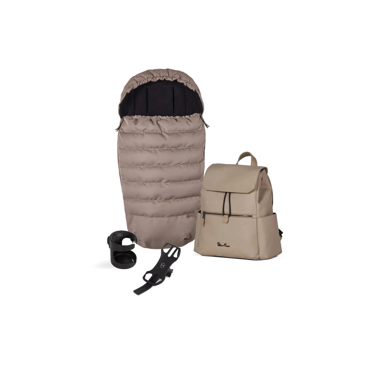 Complete your Silver Cross Dune 2 or Reef 2 pushchair with our stylish Accessory Box. Designed to perfectly coordinate with your pushchair, the Accessory Box includes a soft vegan leather changing backpack with a wipe-clean changing mat, padded thermal footmuff, silicone phone holder and cup holder.