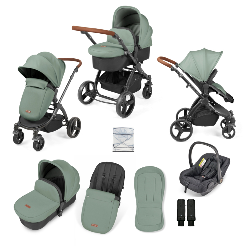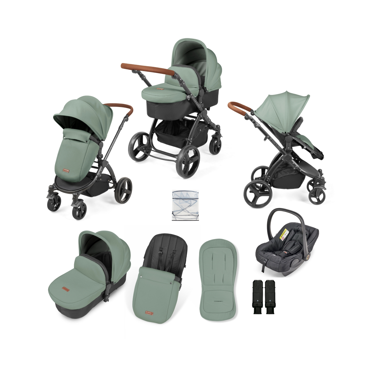 Ickle Bubba Stomp Urban 9 Piece Travel System with Astral Car Seat - Matte Black / Sage Green / Tan (Bounty M)
