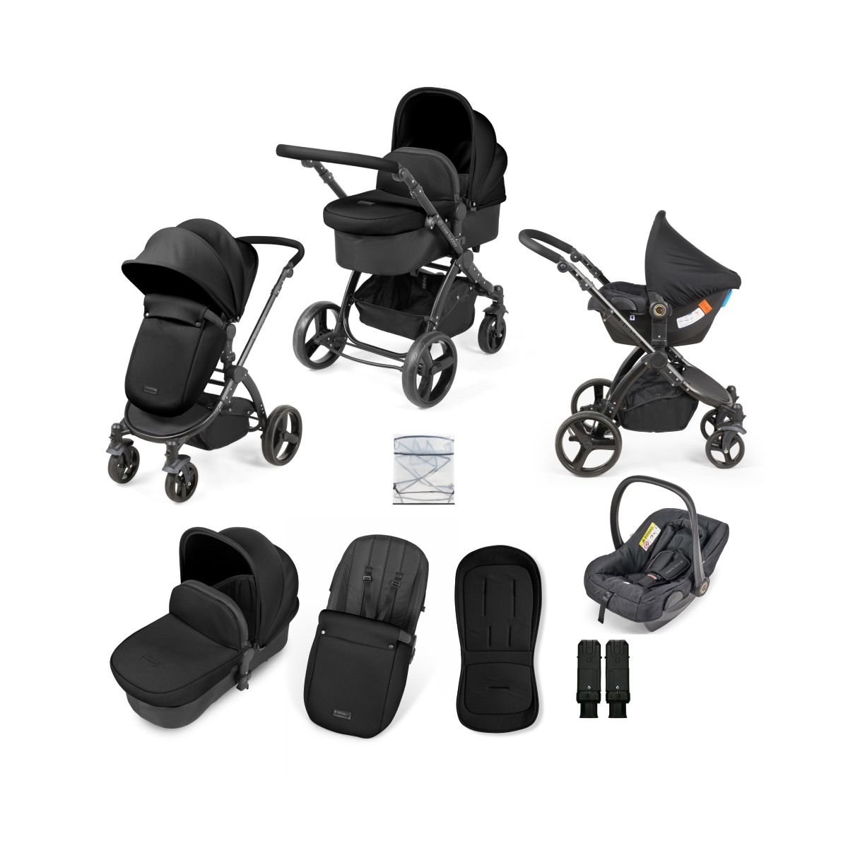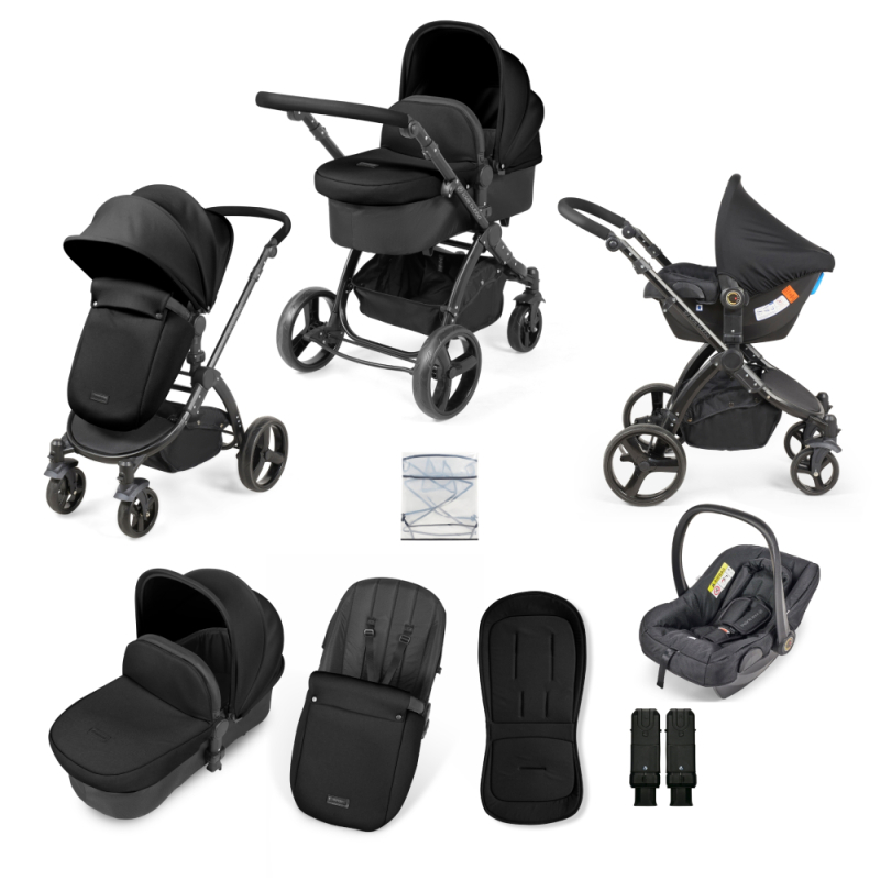 Ickle Bubba Stomp Urban 9 Piece Travel System with Astral Car Seat - Matte Black / Midnight / Black (Bounty M)