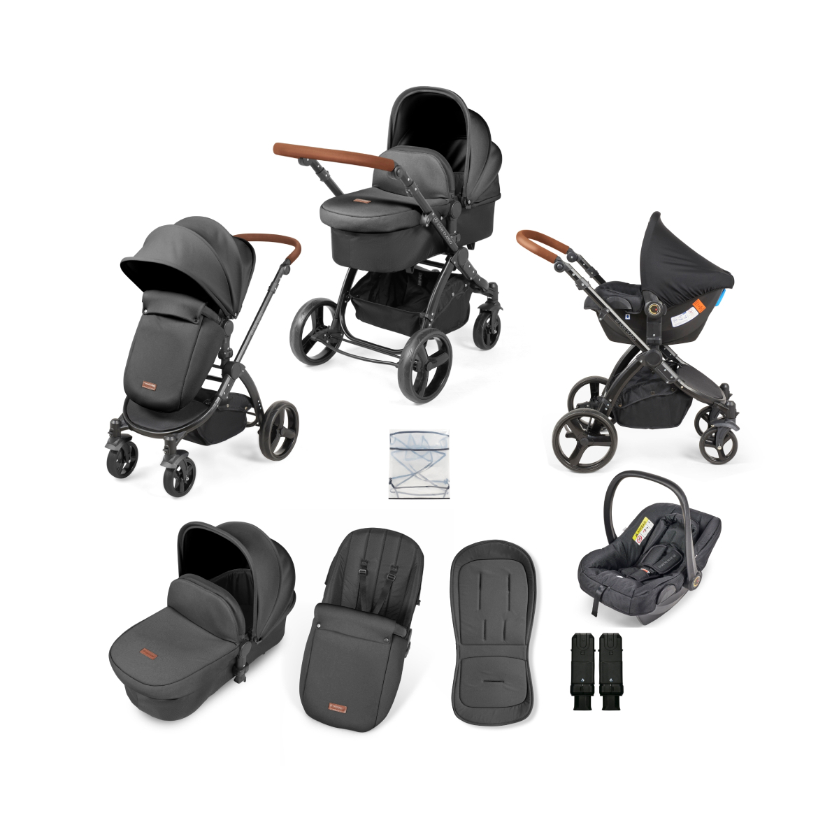 Ickle Bubba Stomp Urban 9 Piece Travel System with Astral Car Seat - Matte Black / Charcoal Grey / Tan (Bounty M)