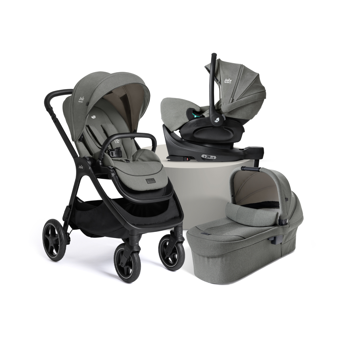 This bundle comes with the finiti pushchair, i-Level Pro infant carrier, ramble XL carrycot and i-Base encore spinning car seat base.