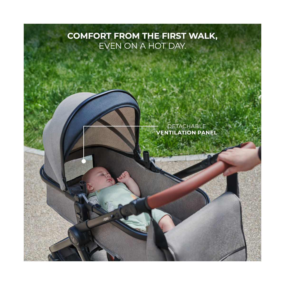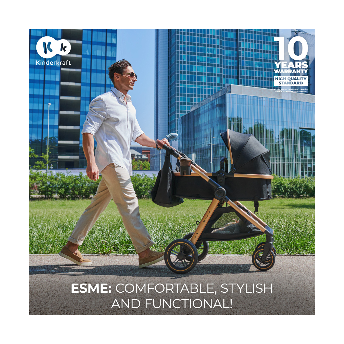Take your daily strolls in style! ESME is a multifunctional 3-in-1 pushchair that will stun anyone with its functionality and elegance. Draw attention with the pushchair’s beautiful, stylish design - its colour palette and the signature, matching frame will make you fall in love with your daily walks. Enjoy a spacious carrycot with a ventilation panel, which can be easily converted into a stroller in three simple motions. Save time and storage space with this brilliant 2-in-1 solution.