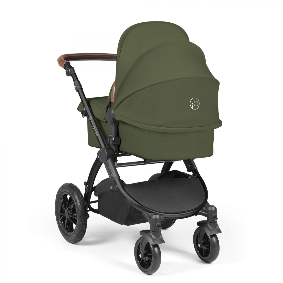 Ickle Bubba Stomp Luxe 12 Piece Travel System with i-Size Cirrus Car Seat & ISOFIX Base - Black/Woodland/Tan