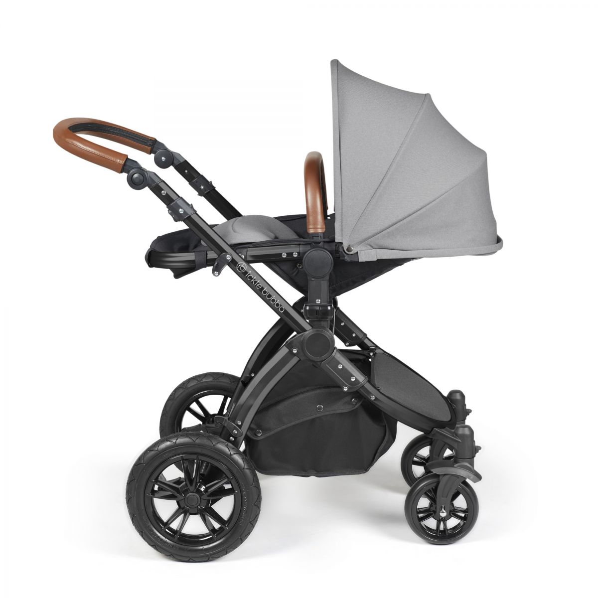 Ickle Bubba Stomp Luxe 12 Piece Travel System with i-Size Stratus Car Seat & ISOFIX Base - Black/Pearl Grey/Tan