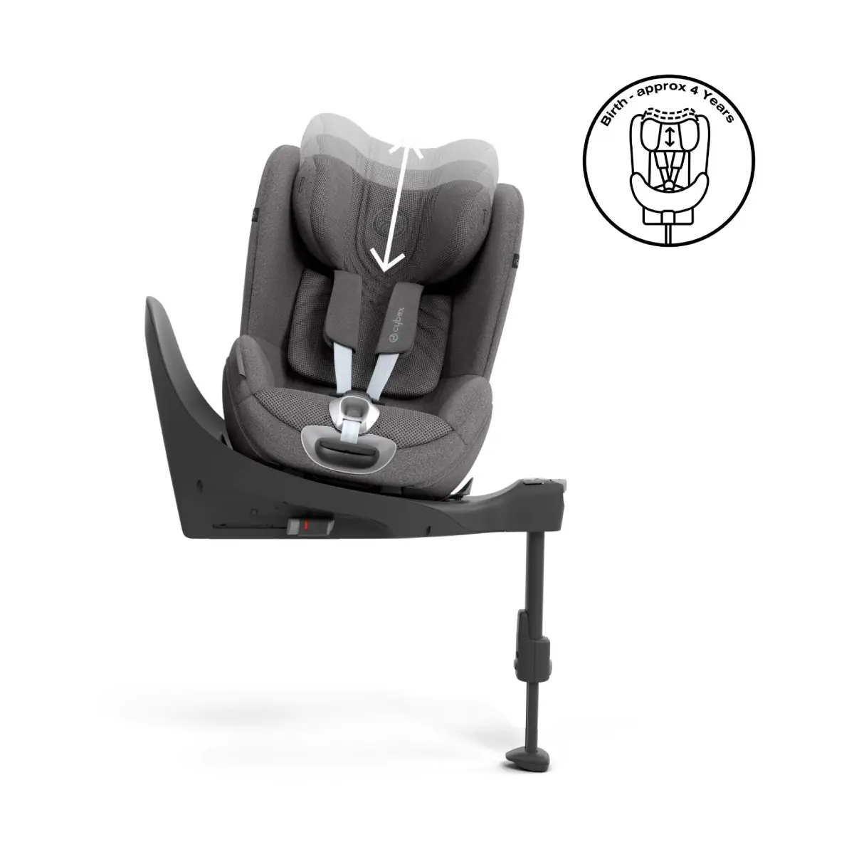 The Cybex Sirona T i-Size is suitable from birth to 4 years (approx.), offering exceptional safety and comfort, and ensuring your child is protected in both directions. Children can stay rearward-facing up to 105cm (4 years approx.) or the seat can be positioned to be forward-facing from 16 months.