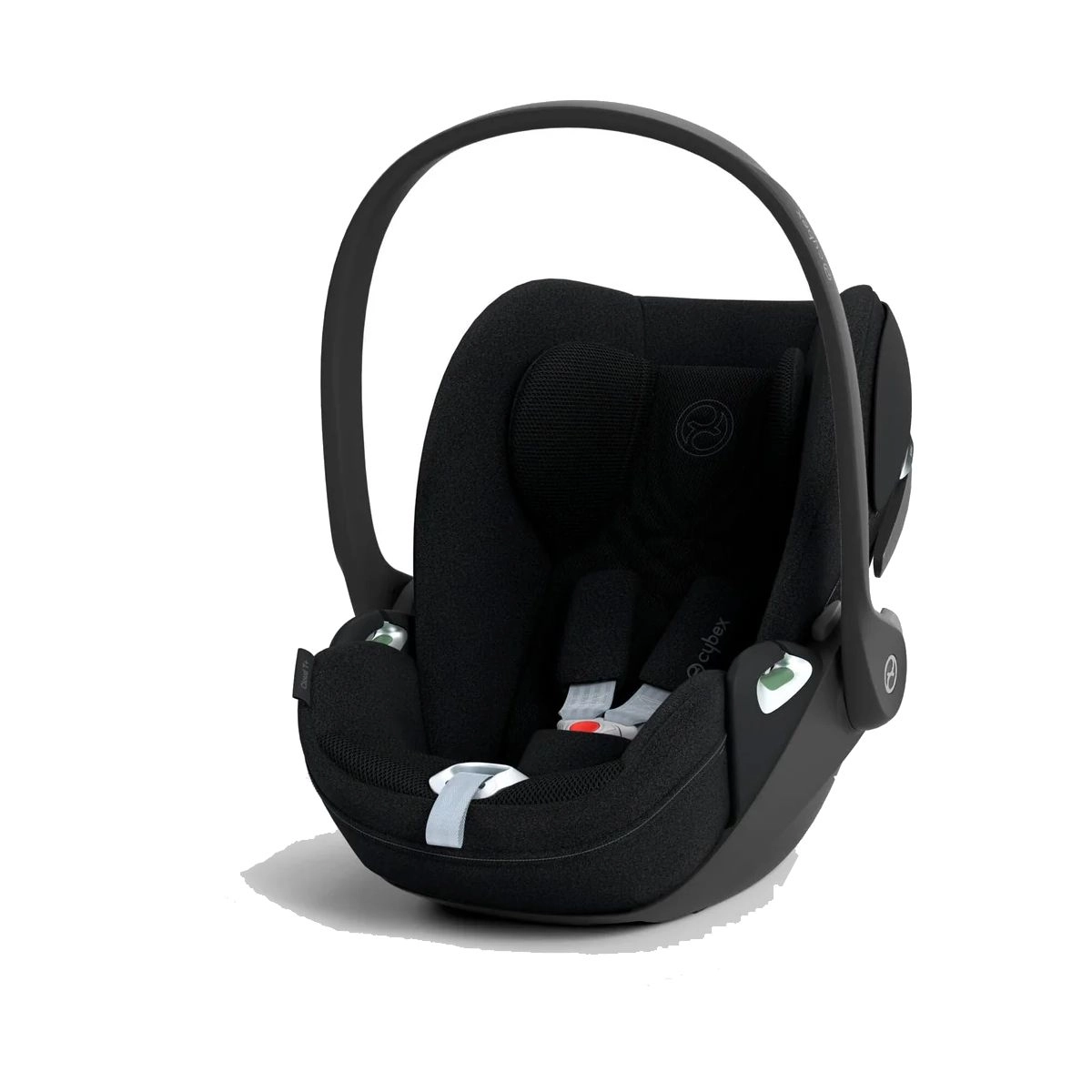 The CYBEX Cloud T PLUS i-Size infant carrier is suitable from birth to approximately 2 years (45–87cm) and delivers outstanding comfort and flexibility both in and out of the car. Groundbreaking Stretch & Lie-Flat Technology — featuring a recline hinge at the hip — creates a simultaneous flattened back and extended leg rest, preventing the head from falling forward and supporting healthy lung development.