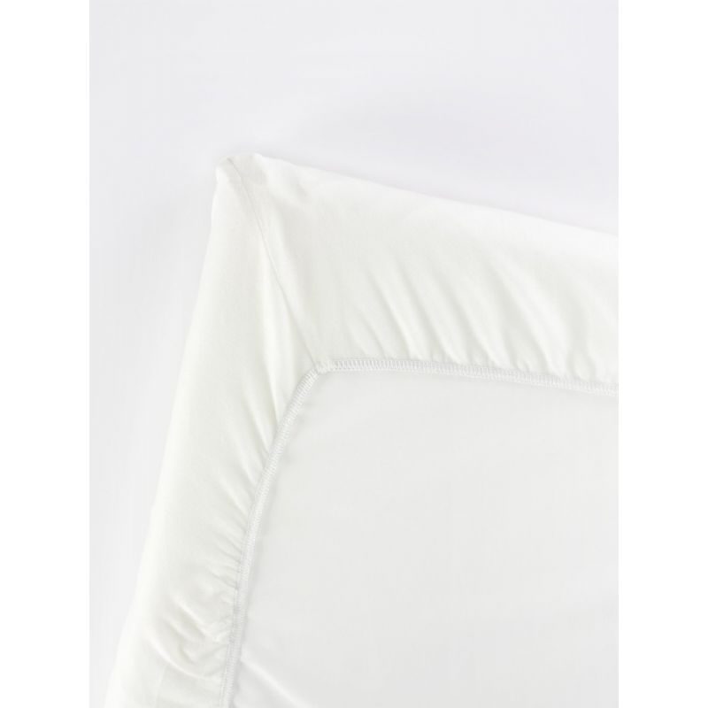 The soft, organic cotton sheet is specially designed to fit the travel cot mattress. The elastic edges ensure that the sheet lies flat and does not slide around. This also means that it’s easy to put on and take off. Machine washable.