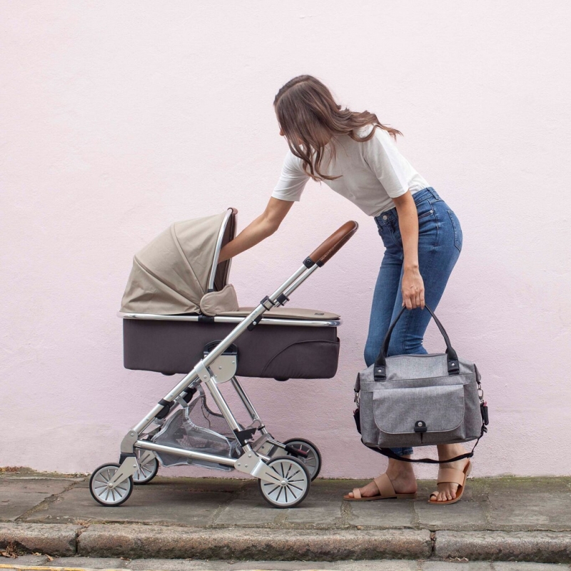 Seven internal and external pockets including one zipped pocket keeping all your valuables safe and organized. Insulated bottle pocket will keep your liquids warm or cool up to four hours. Two front drop-in pouches provide the ideal space for your changing essentials like nappies and babycare cosmetics. One of those pockets features a smart wipes dispenser slot, ideal for put in a pack of your favourite baby wipes. Luxury padded changing mat allows you for comfortable change the nappy, while you are on the go. In the zipped back pocket you can safely store your personal items like mobile phone, keys and sunglasses. Long detachable shoulder strap with patented stroller attachment lets you fasten the bag to your pushchair handle.