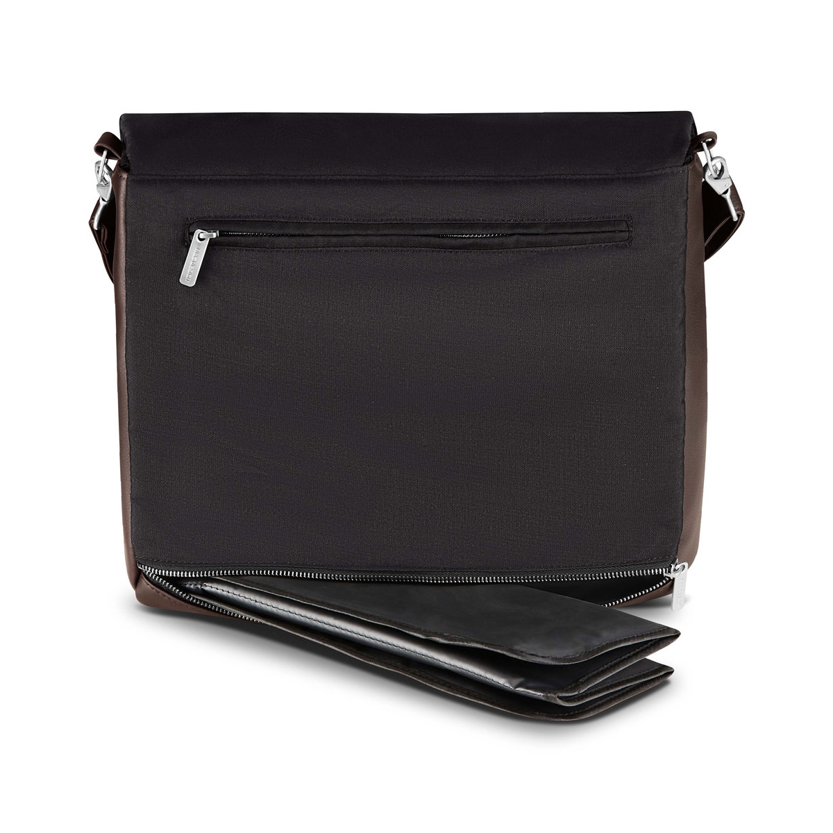 The modern changing bag with exclusive leather-look detailing has a large main compartment ideal for storing nappies and bottles. Then there are various pockets offering a safe place for all the little items. The changing mat supplied with the product provides a hygienic underlay wherever you need to change your baby’s nappy. The bag sits comfortably on the shoulder with its broad leather-look strap.