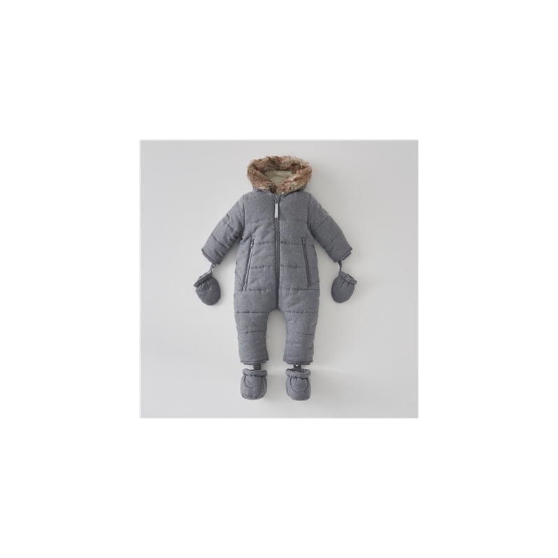 Perfect for keeping your little one snug and cosy when it’s chilly out, our premium pramsuit is made from super soft fleece and sherpa lining and also features a detachable faux-fur hood, ideal for rainy days. The pockets are vented to help regulate temperature and a pocket with strap detail also features on the arm to keep the dummy close by.