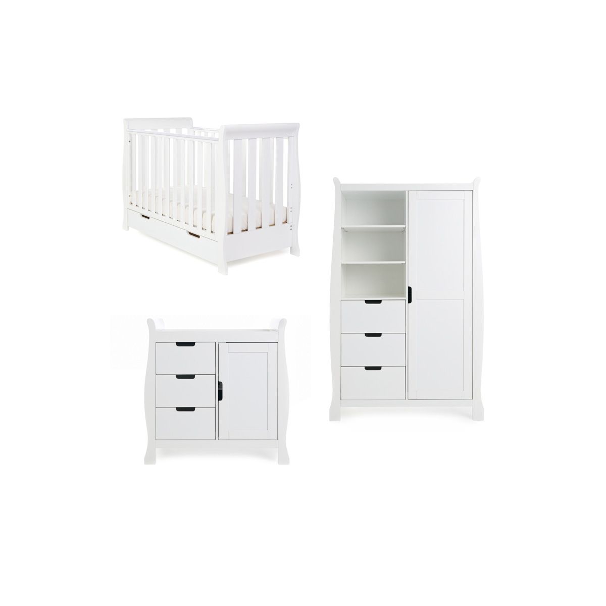 Obaby Stamford Mini Sleigh 3 Piece Furniture Roomset-White Obaby Stamford Mini Sleigh 3 Piece Furniture Roomset - White