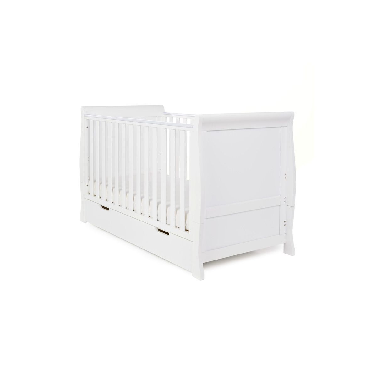 The included matching under drawer slides neatly under the cot bed and offers parent’s that much needed extra storage space for their little one’s belongings without taking up valuable space elsewhere.Available in a range of stylish finishes, the Obaby Stamford sleigh cot bed is the perfect addition to any nursery and coordinates flawlessly with the rest of the Stamford range.Obaby offer a free 2 year guarantee to UK and Ireland when you register your product within 28 days.