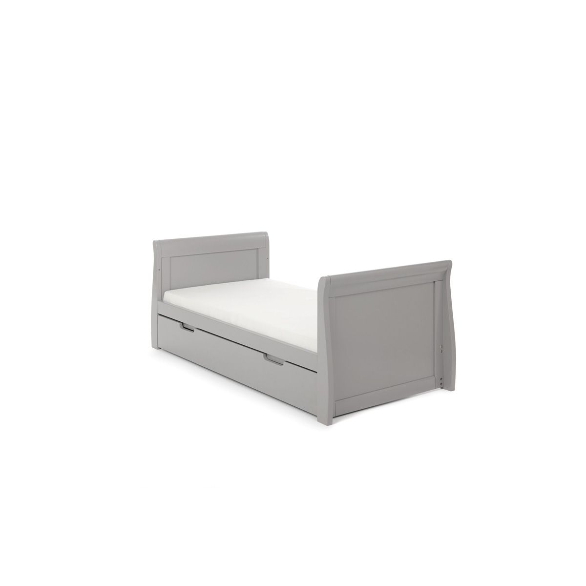 The Obaby Stamford furniture range offers families the perfect combination of style, quality and practicality. At the heart of the range is the beautiful Stamford sleigh cot bed, with its elegant scroll design offering traditional styling with a contemporary finish.As your child grows, so does the Stamford cot bed. Once your child is old enough to progress to a bed, the sides can be removed and the ends split down to create a perfectly sized junior bed to provide the perfect night’s sleep for years to come.