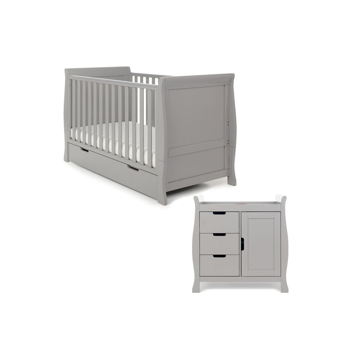 Obaby Stamford Classic Sleigh 2 Piece Furniture Roomset with Underdrawer-Warm Grey Obaby Stamford Classic Sleigh 2 Piece Furniture Roomset - Warm Grey
