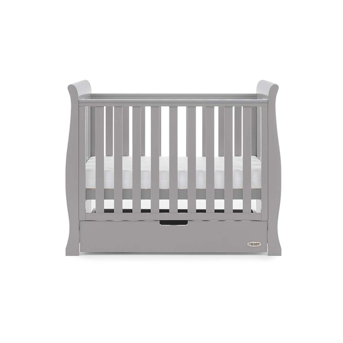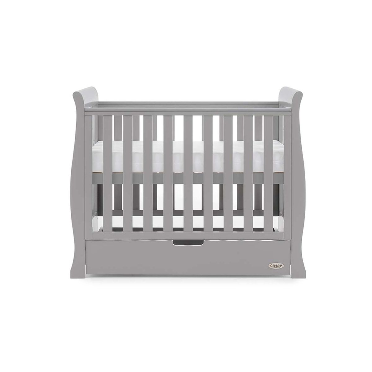 For those who require the features of a full size cot but with have limited space, the Stamford space saver cot bed is the perfect solution. Although needing 45% less space than the Stamford cot bed, the space saver cot still manages to provide a three position adjustable height base, teething rails and an under cot storage drawer.The Obaby Stamford furniture range offers families the perfect combination of style, quality and practicality and like the rest of the range, the space saver cot features the same elegant scroll design offering traditional styling with a contemporary finish.The included matching under drawer slides neatly under the cot and offers parent’s that much needed extra storage space for their little one’s belongings without taking up valuable space elsewhere.Available in a range of stylish finishes, the Obaby Stamford space saver cot is the perfect addition to any nursery and coordinates flawlessly with the rest of the Stamford range.