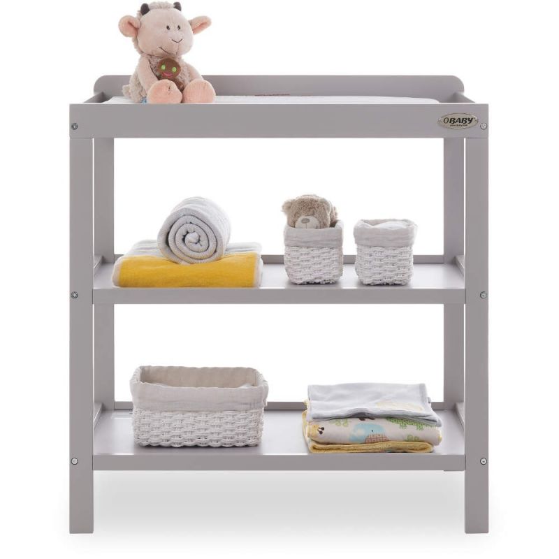 The Obaby open changing unit consists of a spacious changing area at a comfortable height for parents. The two storage shelves enable baby’s essentials to be kept easily at hand for changing times. With smooth lines this open changing unit is easy to keep clean and can accommodate a standard baby changing mat.