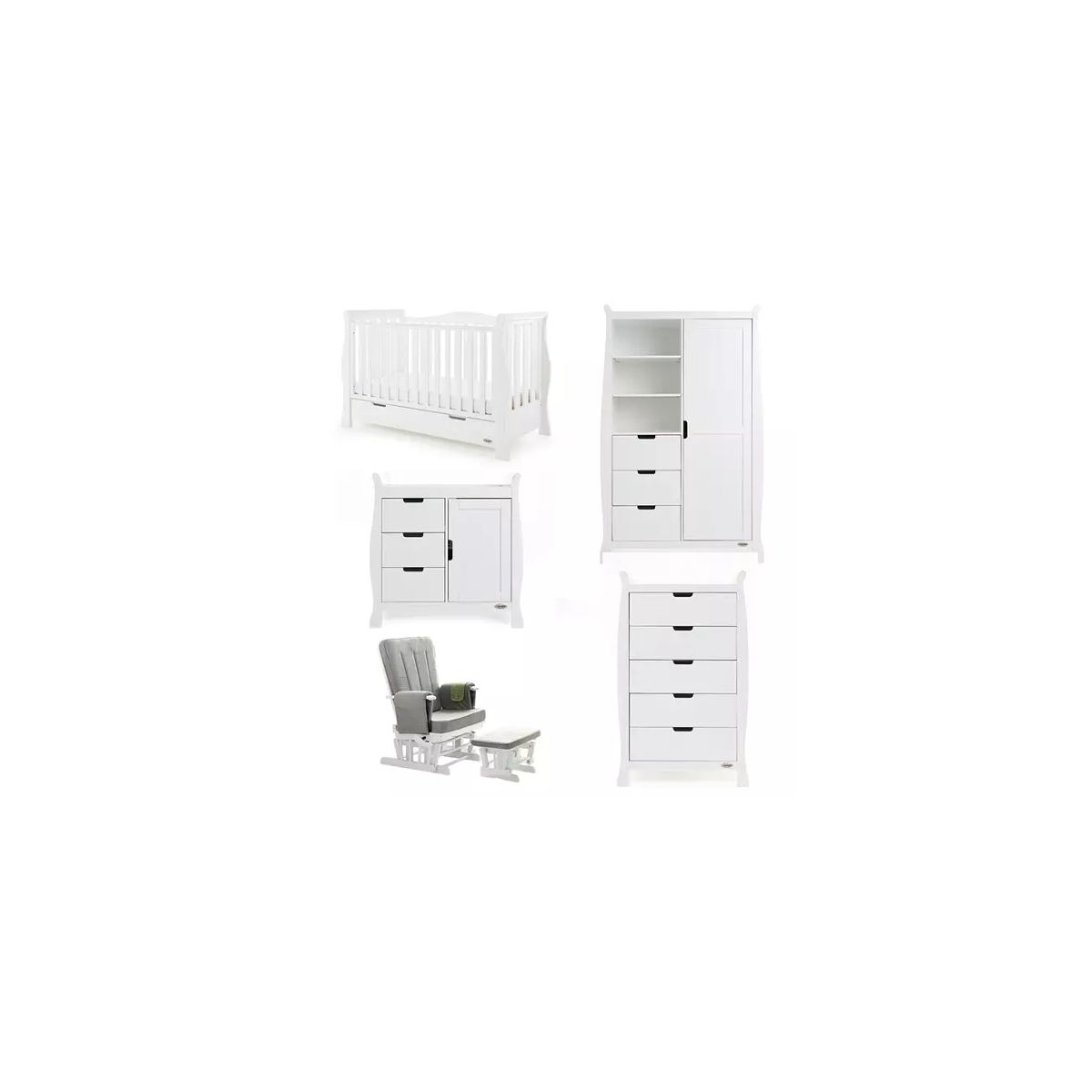 Obaby Stamford Luxe Sleigh 5 Piece Funiture Room Set - WhiteWarning: Last items in stock!