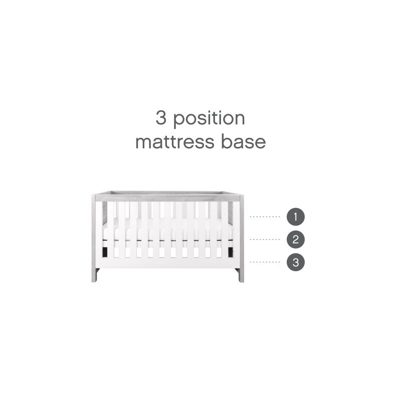 The Modena Cot bed has a beautiful contemporary design combining a classic oak finish. The Modena converts into a toddler bed and sofa bed making it the perfect choice for any nursery designed to grow with your little one.