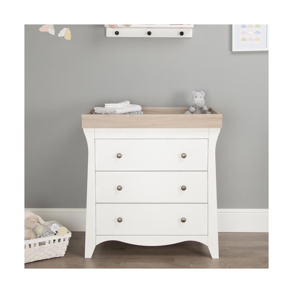 The CuddleCo Clara Dresser is a piece of fashionable and practical furniture to complete your fairy tale nursery. This stylish dresser features 3 spacious drawers, which can be arranged to store your baby clothes and nappy changing essentials. Classic curved shapes and modern brushed metal handles add this dresser an extraordinary contrasting appearance. It comes with a solidly made detachable changing station on top and wall strap kit for additional stability and safety. This furniture is carefully designed in Great Britain and made of solid pine and manufactured wood.