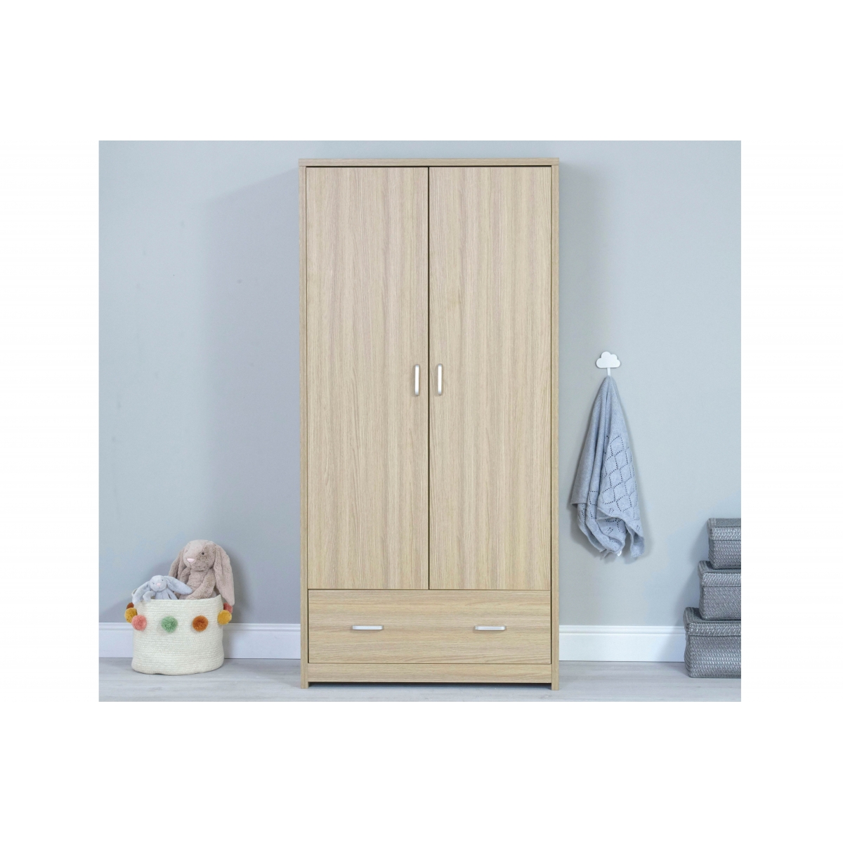 The Babymore Luno 3 Piece Room Set is modern with clean lines and is finished luxuriously with a textured warm oak wood effect, creating the ideal nursery for your little one. This set includes a cot bed, chest changer and wardrobe.