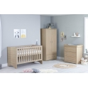 The Babymore Veni 3 Piece Room Set is modern with clean lines and is finished luxuriously with a textured warm oak wood effect, creating the ideal nursery for your little one. This set includes a cot bed, chest changer and wardrobe.