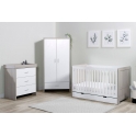 The Pembrey 3 Piece Set and under drawer includes cot bed, changing unit, wardrobe and under drawer. Whatever your personal style The Pembrey Furniture Collection has an option to suit you. Available in 3 different colour options, offering you a choice of a full textured oak design or alternatives that include contemporary white detailing.