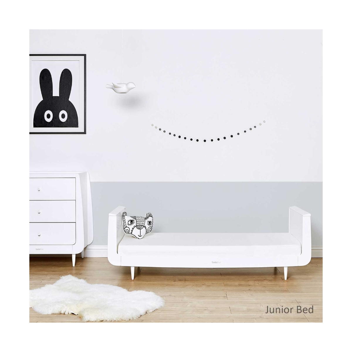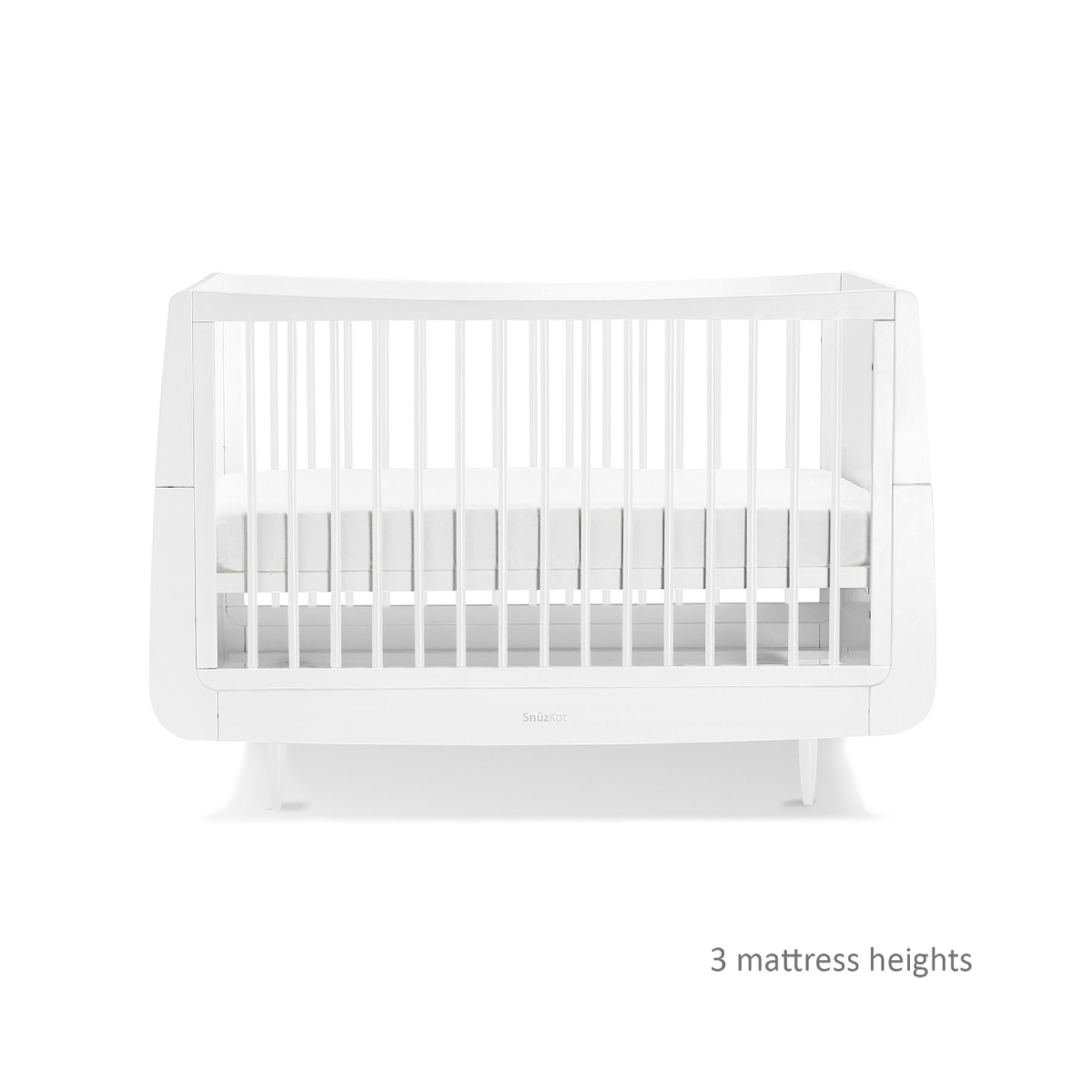 Keep your little one having sweet dreams in timeless Scandinavian style with the SnuzKot Skandi cot bed! This charming cot can be used from birth and will keep up with your little one as they grow. Use from birth to 18 months, then convert it into to a toddler bed suitable up to 4 years. With the additional junior bed extension kit (sold separately) it can even grow with your child up to the age of 10. This Skandi cot bed has truly been designed to last through the years, made using natural beech wood without any MDF or veneer. Adding even more flexibility, the mattress base has 3 height positions, making it easy for parents to get their little one in and out without over-stretching. Lift your newborn baby from the highest point, and as they grow and learn to sit and stand, the base can be lowered to prevent them climbing out.