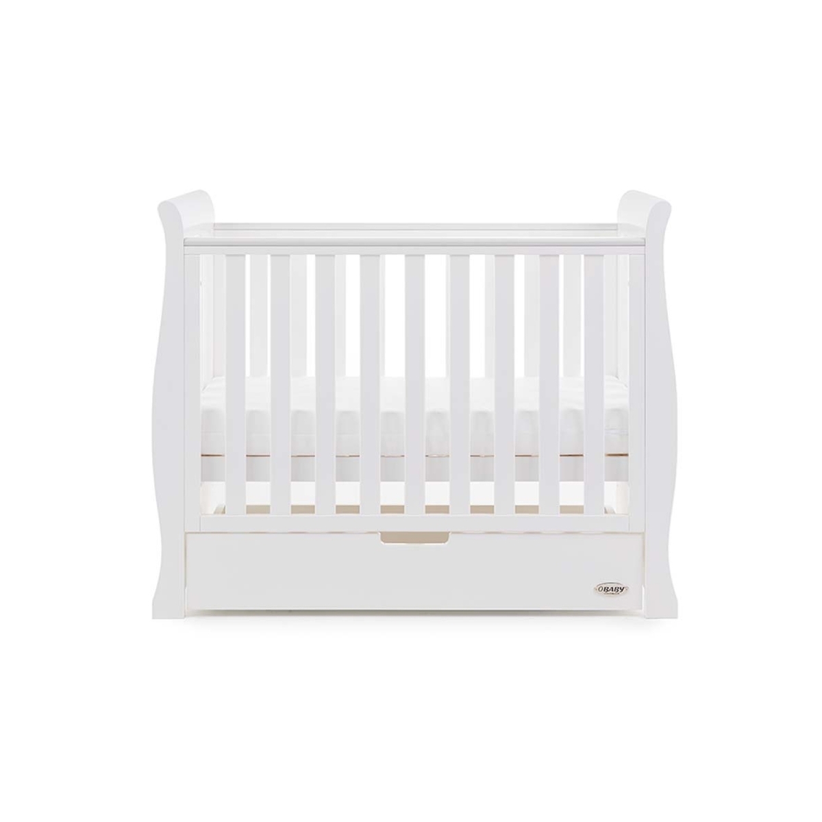 For those who require the features of a full size cot but with have limited space, the Stamford space saver cot bed is the perfect solution. Although needing 45% less space than the Stamford cot bed, the space saver cot still manages to provide a three position adjustable height base, teething rails and an under cot storage drawer.The Obaby Stamford furniture range offers families the perfect combination of style, quality and practicality and like the rest of the range, the space saver cot features the same elegant scroll design offering traditional styling with a contemporary finish.The included matching under drawer slides neatly under the cot and offers parent’s that much needed extra storage space for their little one’s belongings without taking up valuable space elsewhere.Available in a range of stylish finishes, the Obaby Stamford space saver cot is the perfect addition to any nursery and coordinates flawlessly with the rest of the Stamford range.