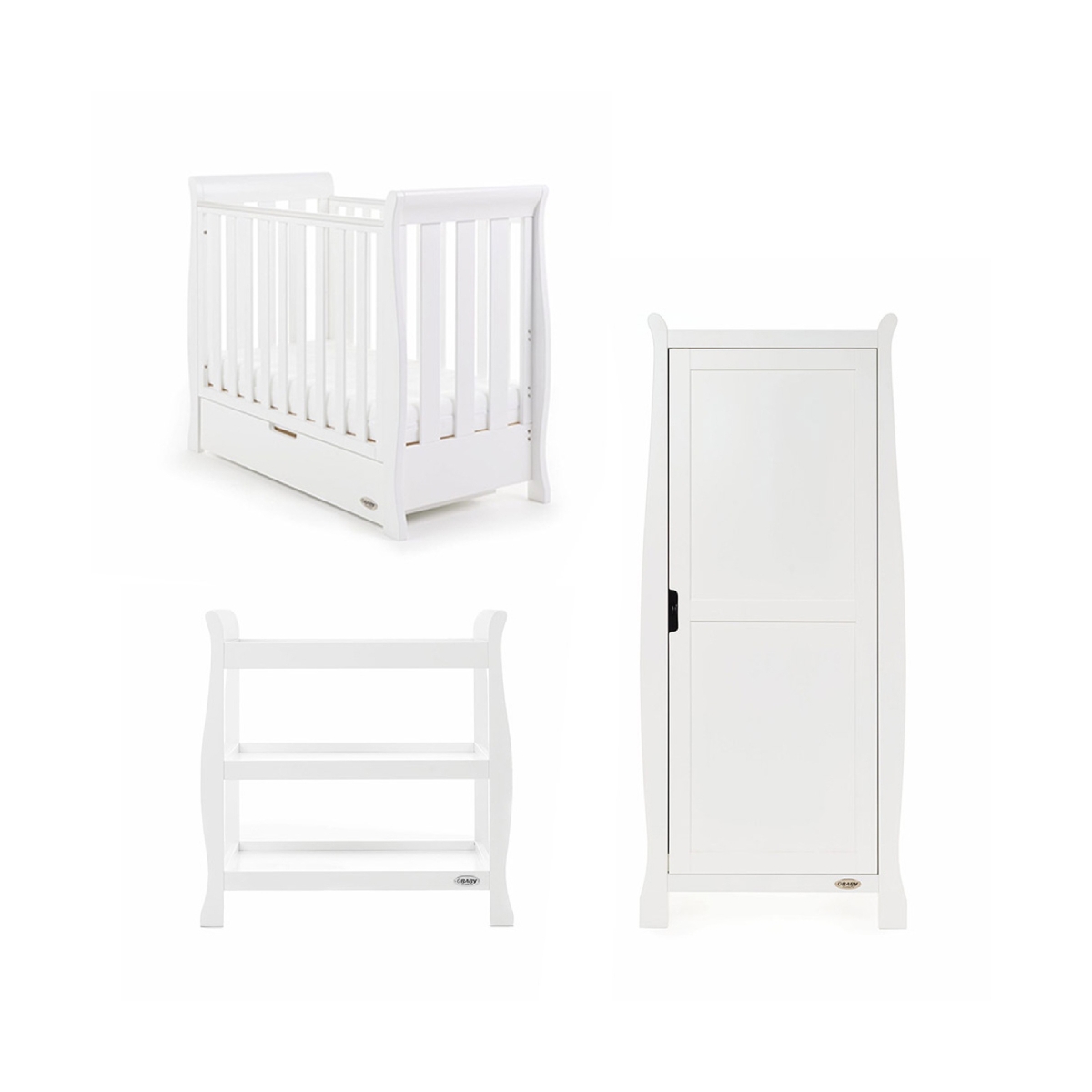 Obaby Stamford Sleigh SPACE SAVER 3 Piece Furniture Room Set - WhiteEnter your details below and we'll send you an email as soon as this product is back in stock. you are not committed to buying by giving us your details, and we promise not to pass them on to any third parties.