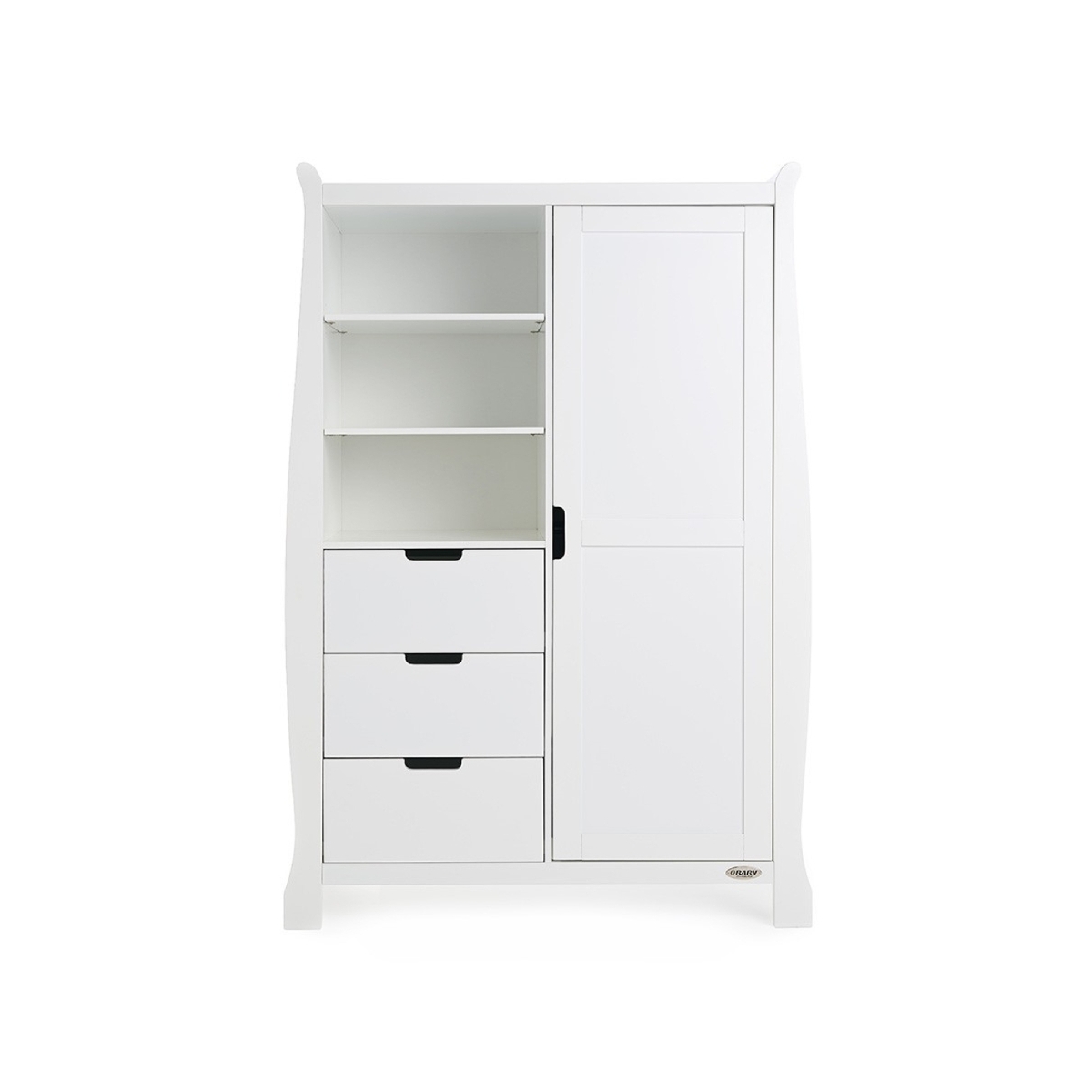 "The Obaby Stamford furniture range offers families the perfect combination of style, quality and practicality. The Stamford Luxe 4 piece room set consists of the beautiful Stamford Luxe cot bed with under drawer, closed changing unit, double wardrobe and tall chest of drawers. All pieces feature the same elegant sleigh design that flows throughout the Stamford range.