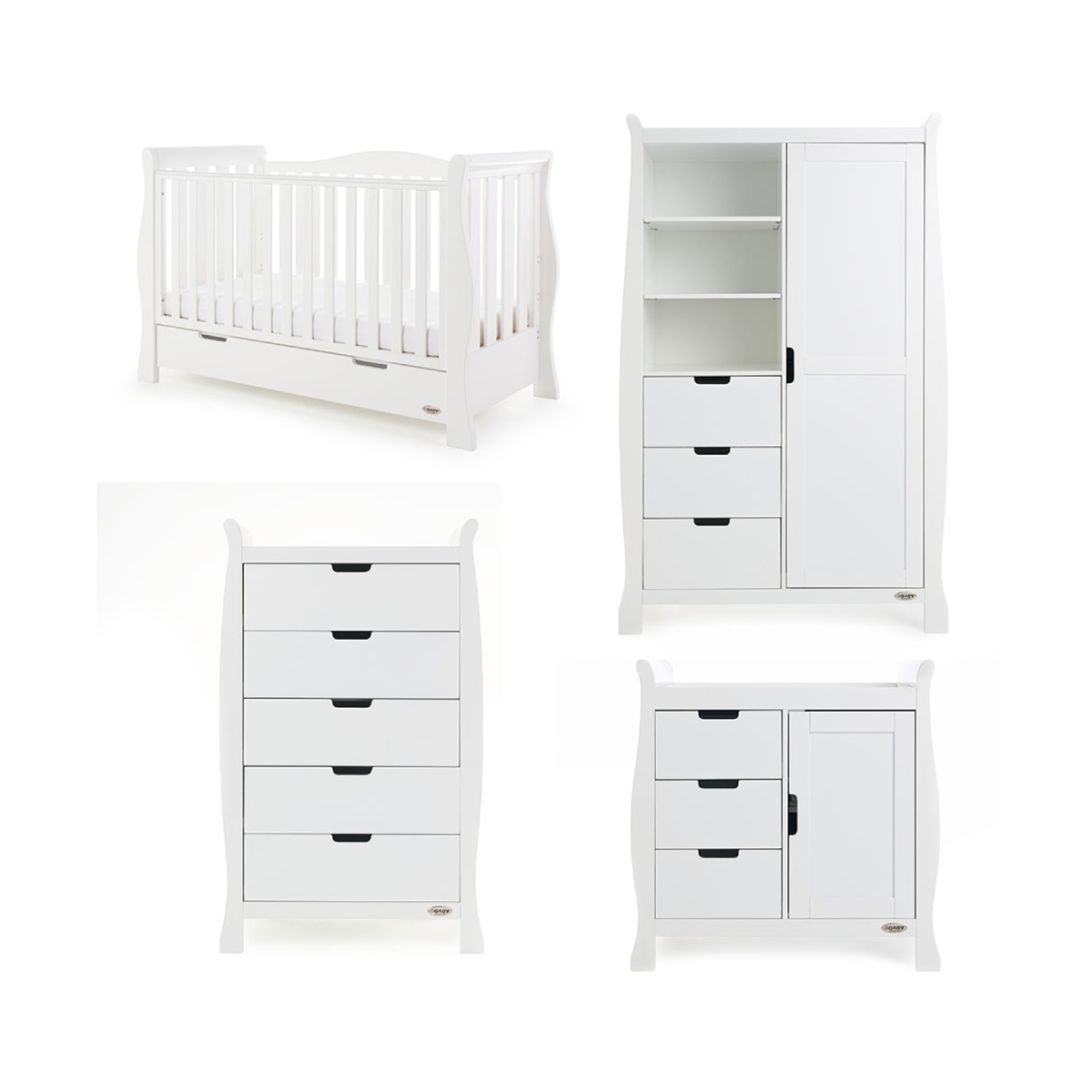 Obaby Stamford Luxe Sleigh 4 Piece Room Set - WhiteWarning: Last items in stock!