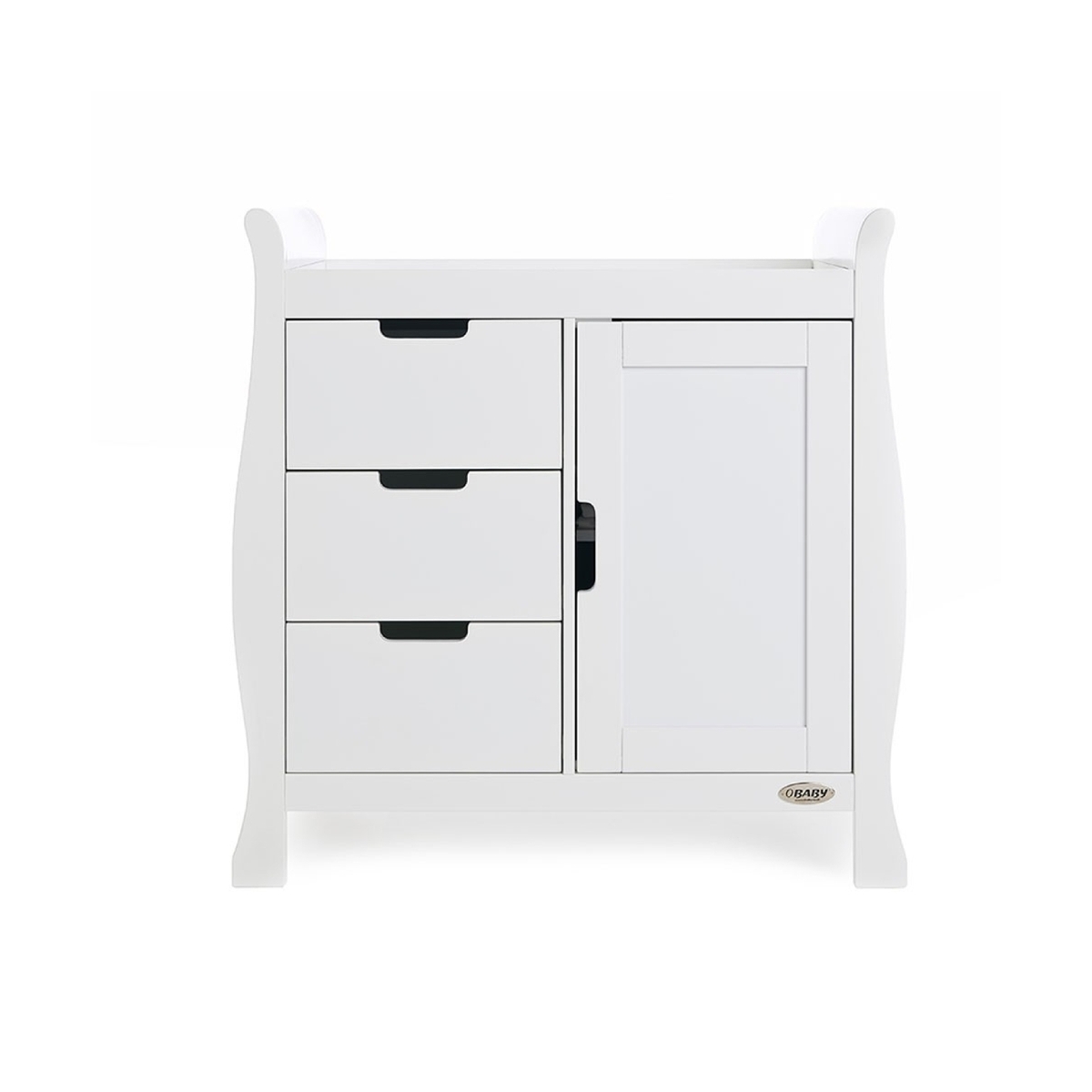 The Stamford closed changing unit’s combination of three spacious 13L capacity drawers and full height cupboard with adjustable shelf and soft close door provide plenty of storage options, whilst the cleverly recessed section on the top of the changing unit perfectly accommodates a changing mat up to 76 x 46cm.