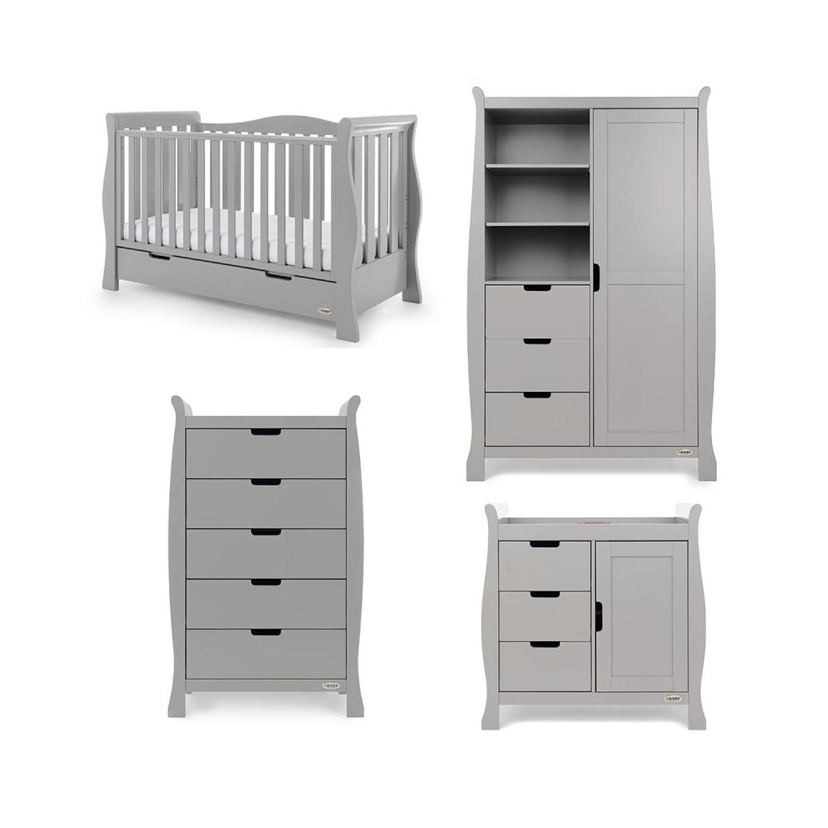 Obaby Stamford Luxe Sleigh 4 Piece Room Set - Warm GreyWarning: Last items in stock!