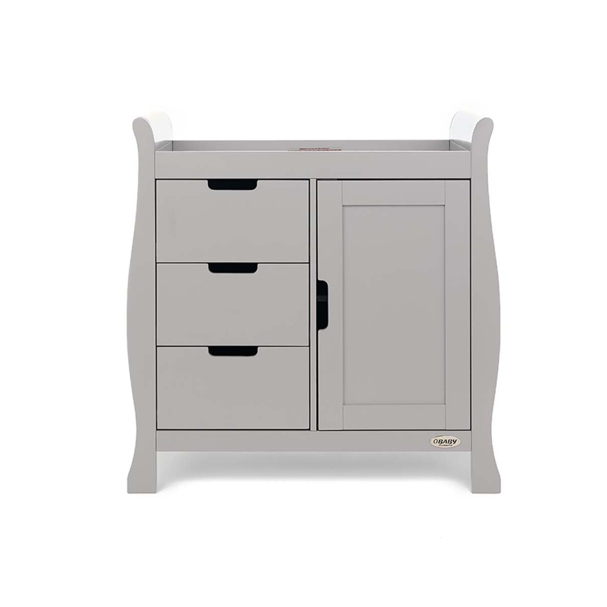 The Stamford closed changing unit’s combination of three spacious 13L capacity drawers and full height cupboard with adjustable shelf and soft close door provide plenty of storage options, whilst the cleverly recessed section on the top of the changing unit perfectly accommodates a changing mat up to 76 x 46cm.
