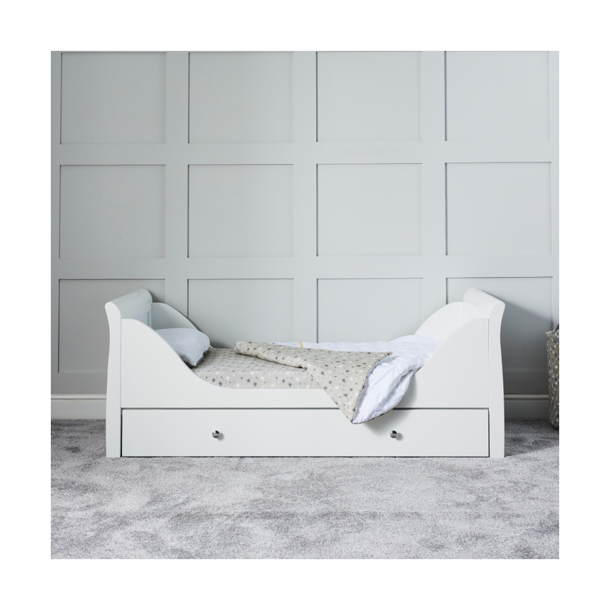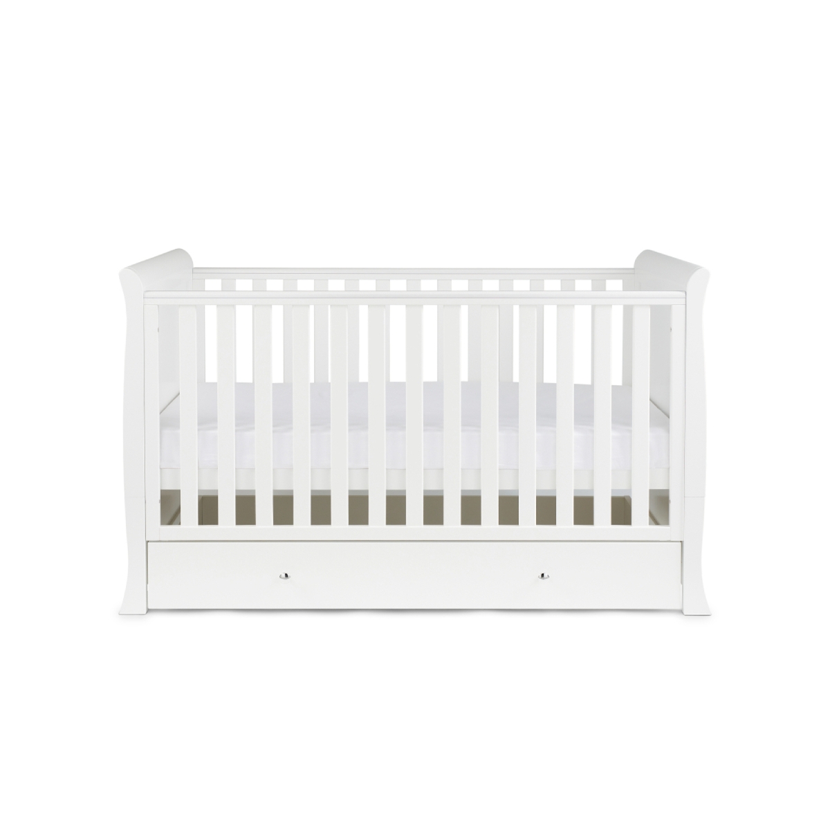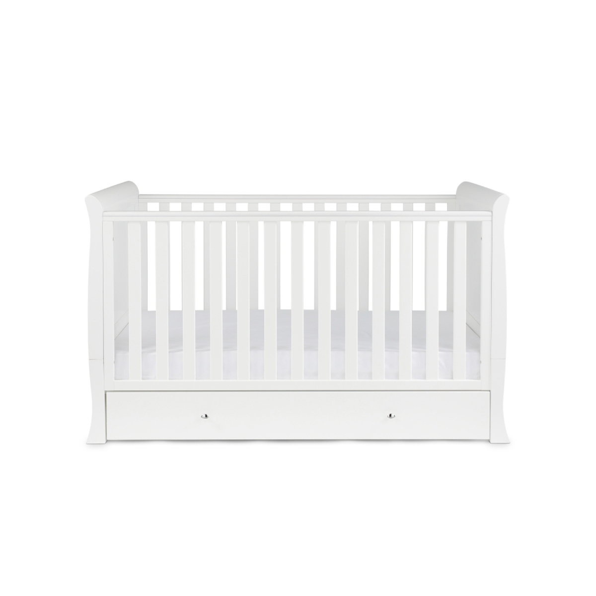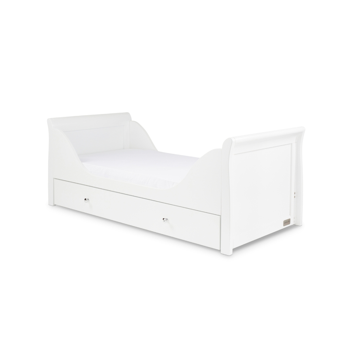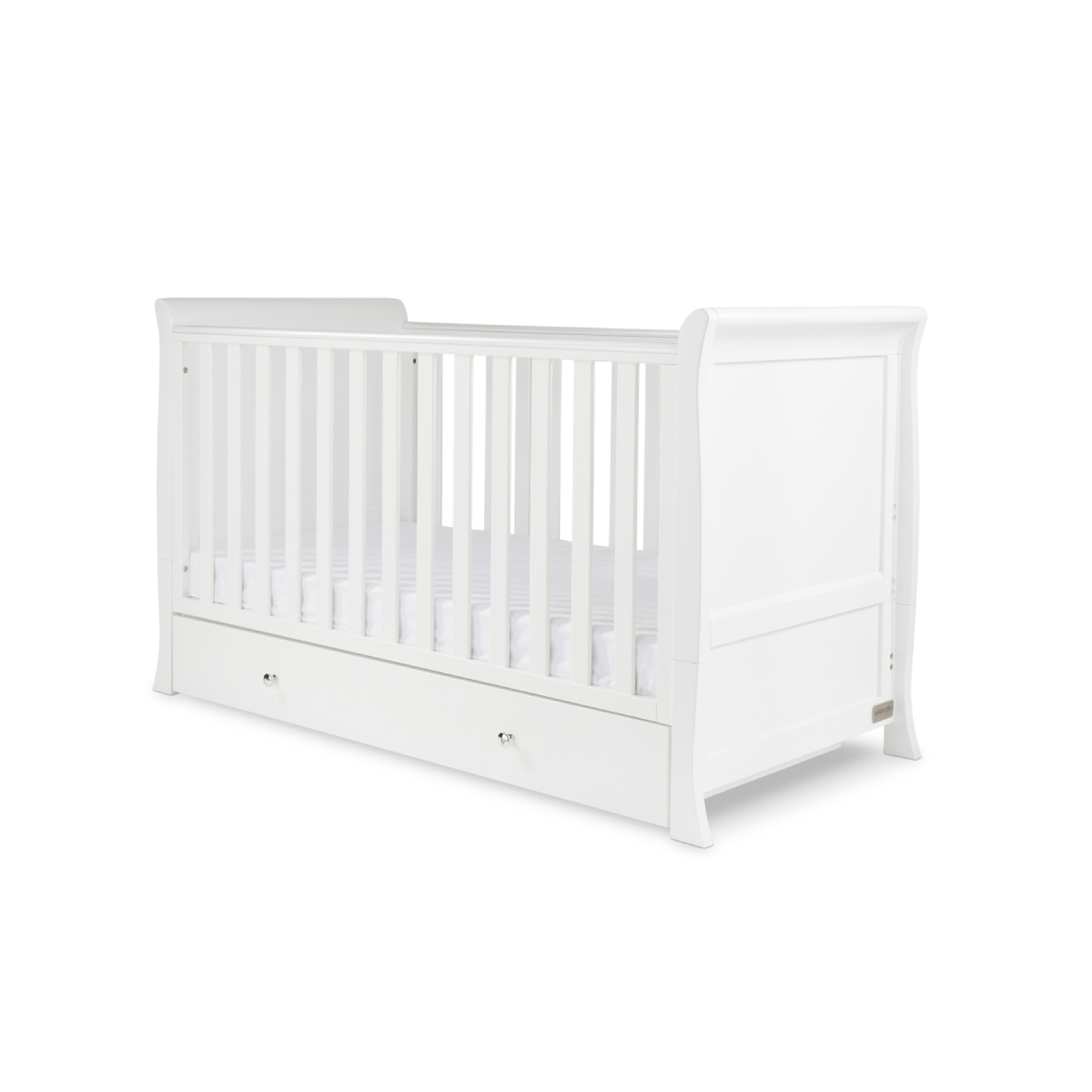 When your child is ready for an independent sleep, you can convert your Snowdon Classic Cot Bed to an elegant junior bed by simply remove side rails and lower both ends. This cot bed requires one and the same 140 x 70 cm mattress (sold separately) for both modes. It comes with large under drawer with handles and easy going runners, that provides spacious and convenient storage perfect for bedding and other essentials.