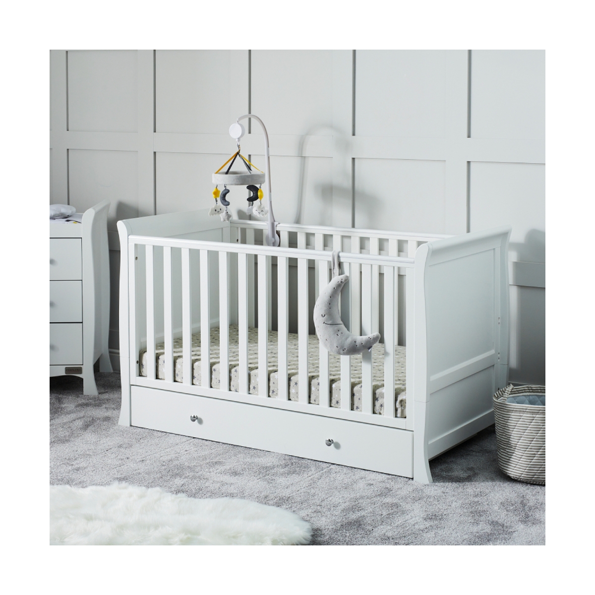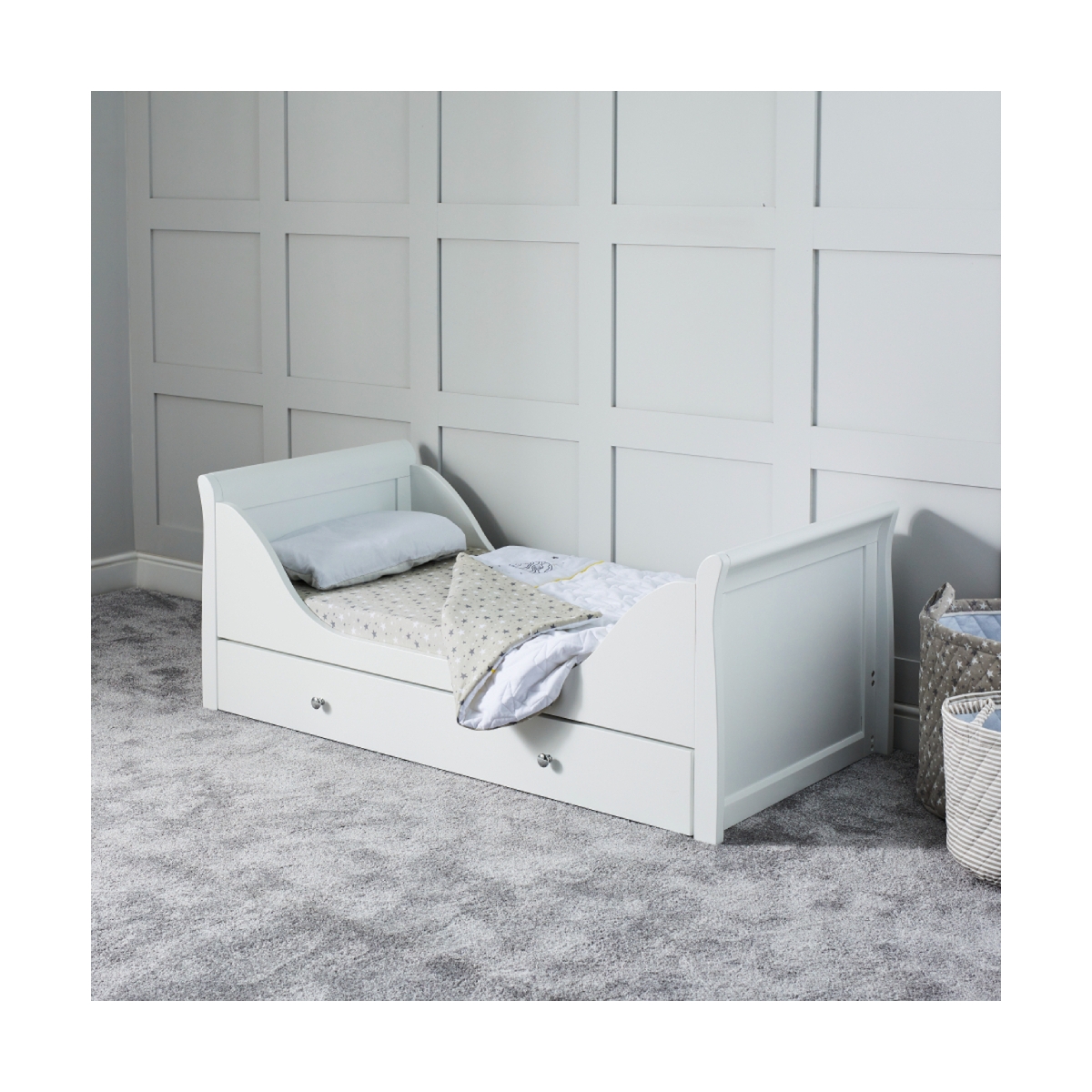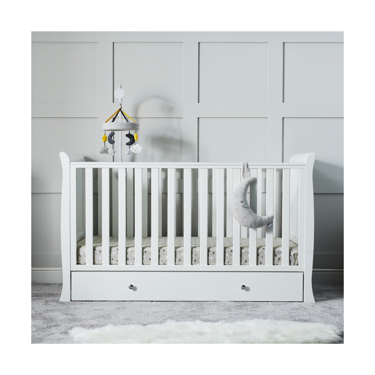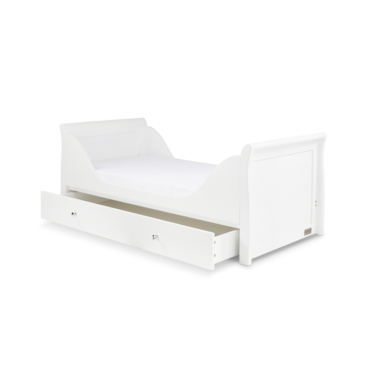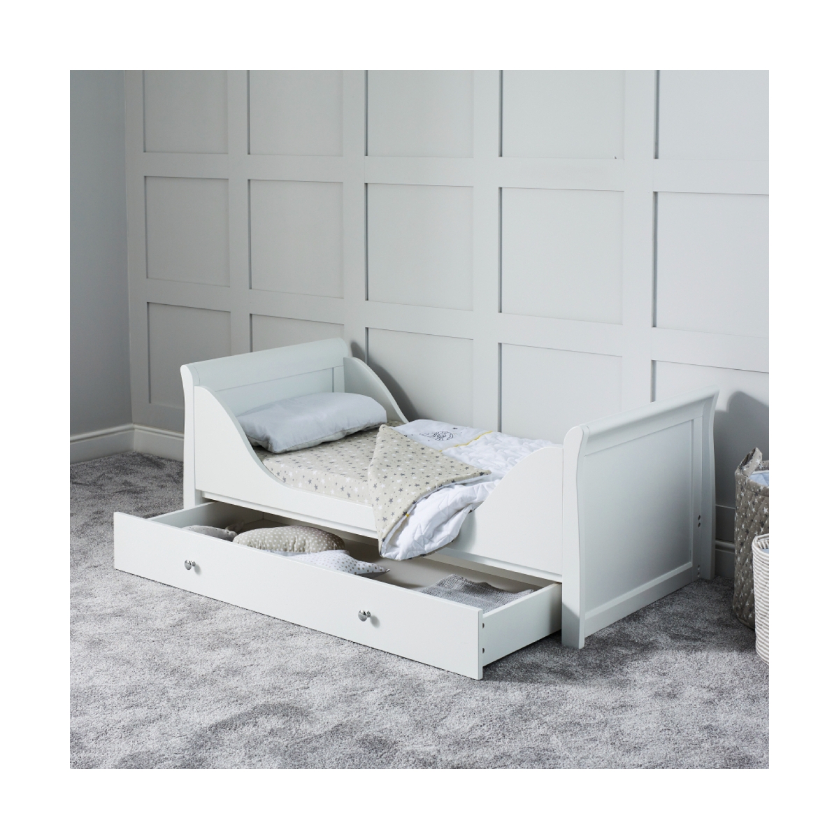 When your child is ready for an independent sleep, you can convert your Snowdon Classic Cot Bed to an elegant junior bed by simply remove side rails and lower both ends. This cot bed requires one and the same 140 x 70 cm mattress (sold separately) for both modes. It comes with large under drawer with handles and easy going runners, that provides spacious and convenient storage perfect for bedding and other essentials.