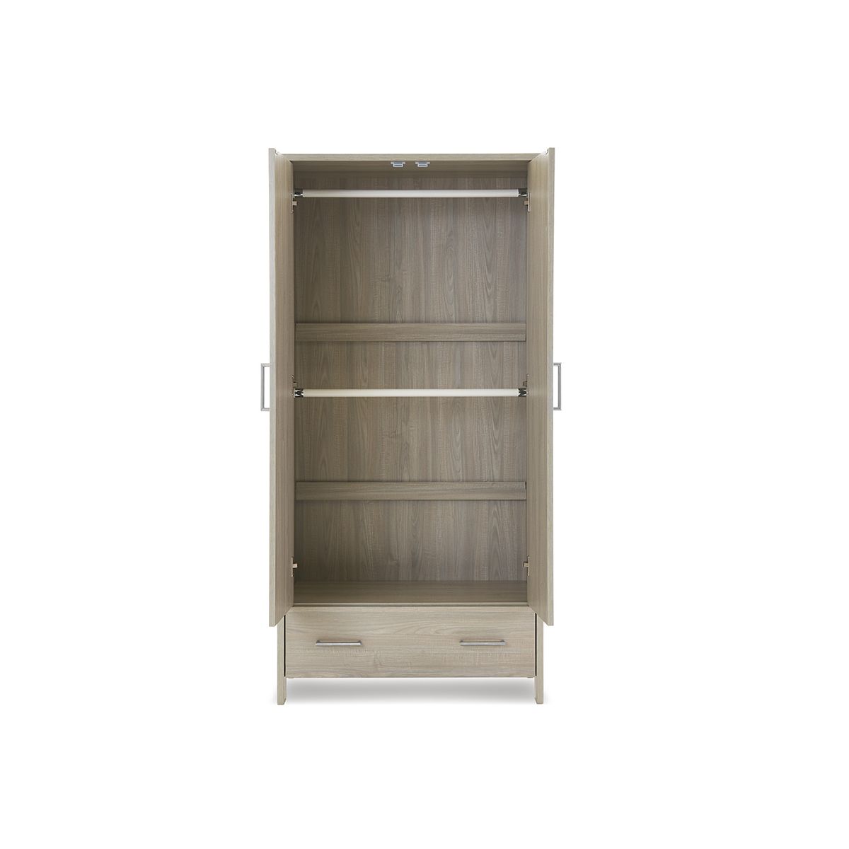With a modern design and a beautiful textured oak effect finish, the Nika Double Wardrobe from Obaby will complement your nursery perfectly and last through the years.