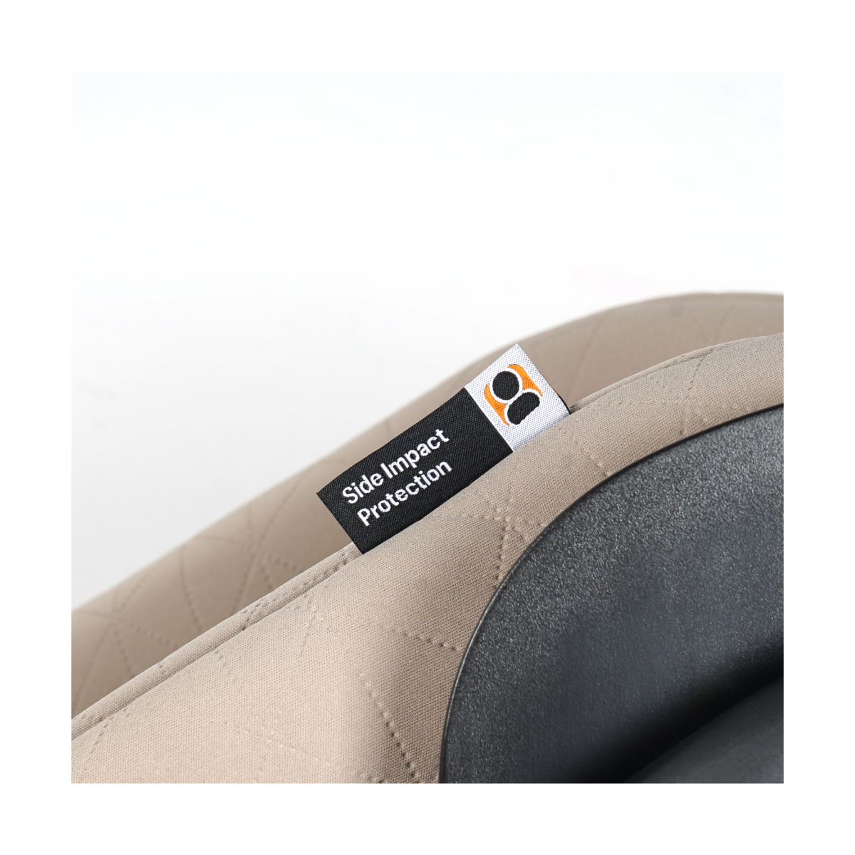 Designed for rear-facing travel, the Air+ includes a secure 5-point harness with shoulder pads, a chest strap adjuster, and a padded buckle and crotch pad for comfort and stability. The protective shell includes a Side Impact Protection System for added reassurance on every journey. When used with a compatible base, it is designed to meet applicable i-Size (R129) safety standards.