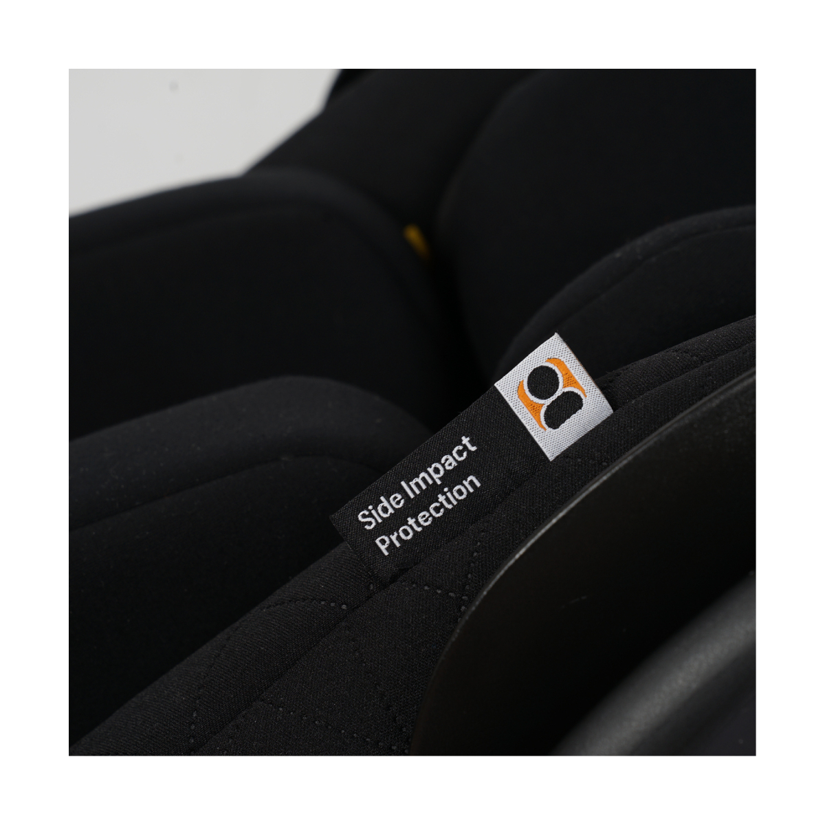 Designed for rear-facing travel, the Air+ includes a secure 5-point harness with shoulder pads, a chest strap adjuster, and a padded buckle and crotch pad for comfort and stability. The protective shell includes a Side Impact Protection System for added reassurance on every journey. When used with a compatible base, it is designed to meet applicable i-Size (R129) safety standards.