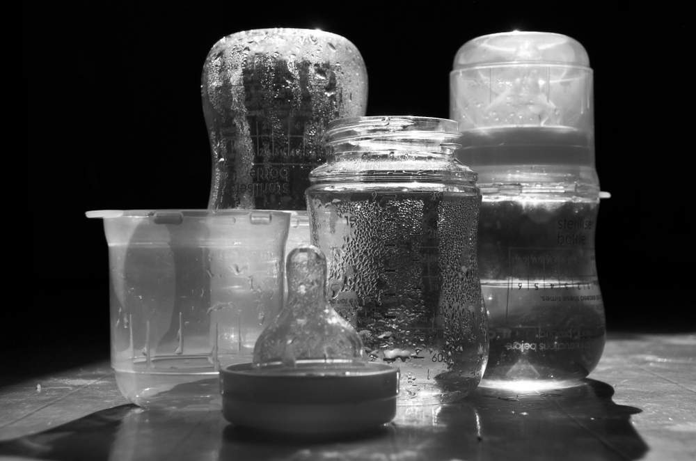 Fill the pan with water and bring to the boil. Submerge the items you wish to clean, ensuring that they are kept below the surface of the water; again, you may wish to use something to keep them under. You also need to make sure there are no trapped air bubbles. Keep the bottles in the boiling water for at least 10 minutes. If you don’t need to use the bottle immediately, keep the lid of the pan on until you need them.