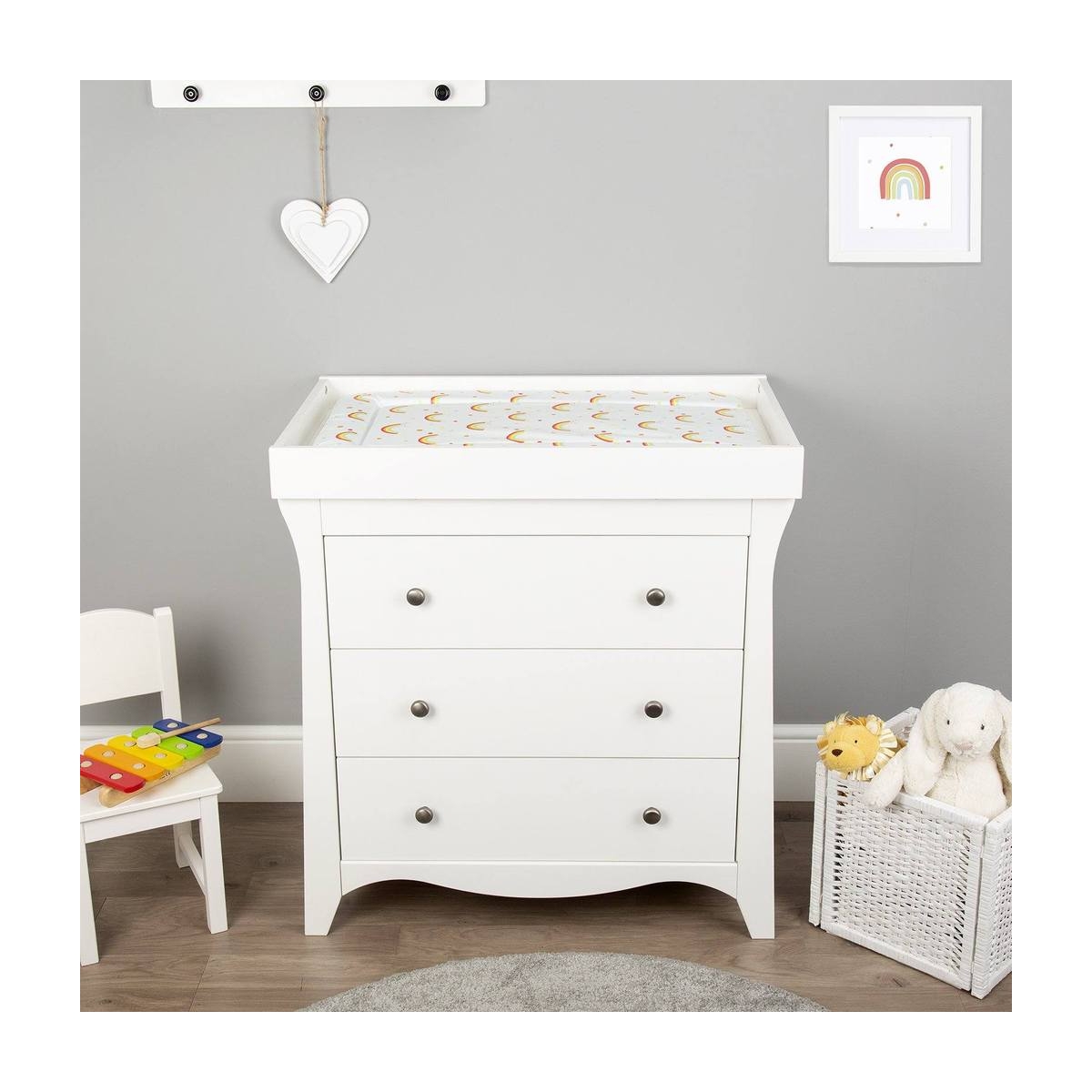 The CuddleCo PVC changing mat is waterproof, wipe clean and soft padded, providing a comfortable area to change your baby. Made of Phthalate-free PVC material, which is safe to baby's skin. The adorable design with colourful print and curved corners will stand a nice contrasting addition to your nursery furniture. The mat fits standard sized changing units.