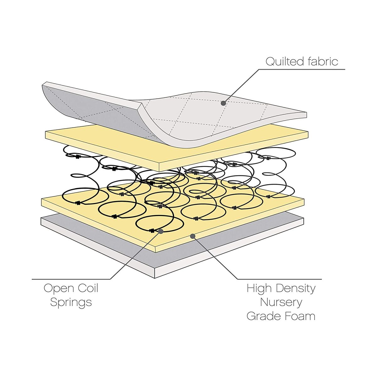 Tutti Bambini Sprung Cot Bed Mattresses are swathed in a superior foam for a cosy, safe and peaceful night’s sleep. This mattress supports a natural posture and is quilted using a 100% polyester filling to avoid perspiration (no PVC), leaving your little one feeling cool and comfortable.