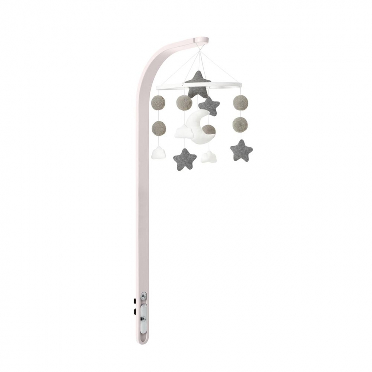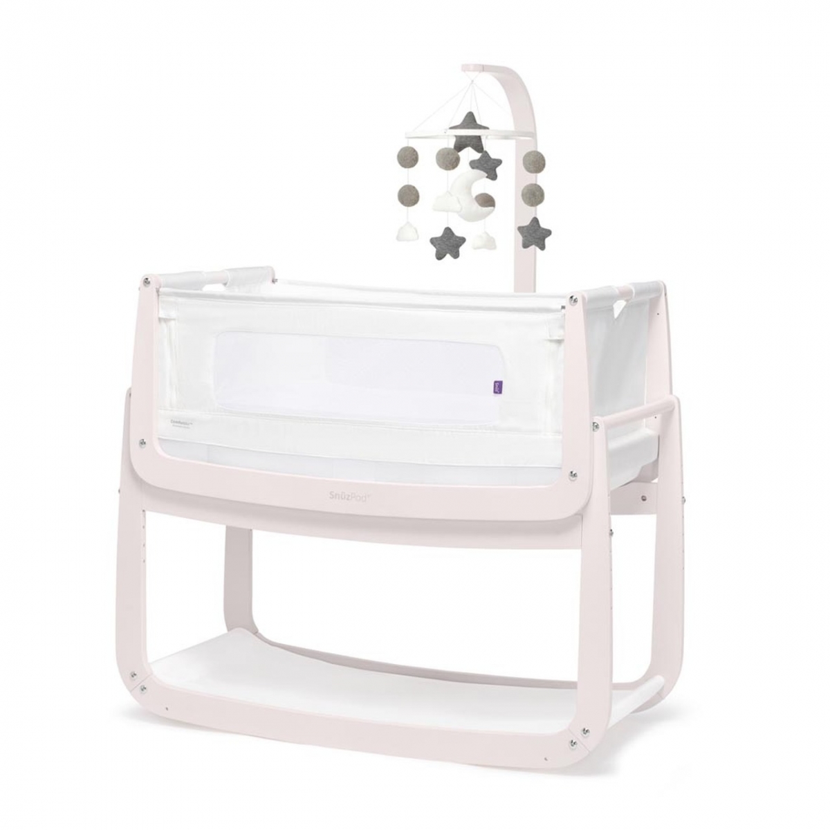 This Snuz Baby Mobile is a perfect addition for Snuz nursery furniture range. A celestial array of soft cotton charms including plush stars, puffy white clouds, and a curvy crescent moon will dance above your little one's head, which will help you to relax and soothe your baby to sleep. This adorable can be easily attached to the SnuzPod or SnuzCot, thanks to a high arm made of beech plywood.