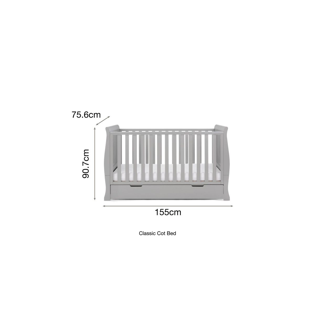 Obaby Stamford Classic Sleigh Cot Bed Including Underbed Drawer-Warm GreyWarning: Last items in stock!