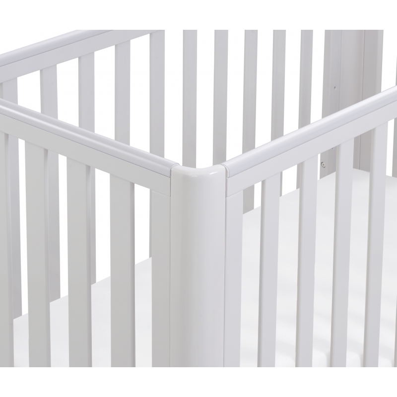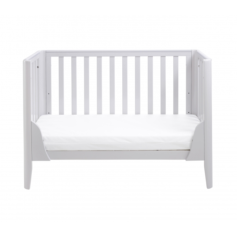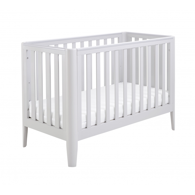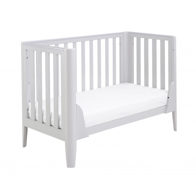 Made of solid pine. The Iris cot bed designed to last from birth until toddler age. 3 mattress base position for optimal sleep positions of early months, convert the cot to bed by remove the side, create a perfect toddler bed and a seater.