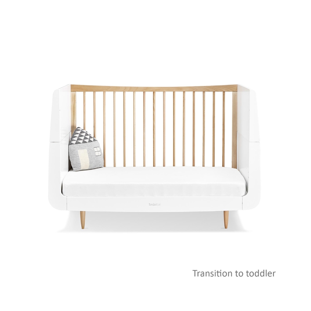 From 18 months to 4 years old the sides can be taken off the SnuzKot to create a toddler bed and after 4 years you can buy an additional extension set which will allow you to use the bed until 10 years old! The natural beech wood that the SnuzKot is made from also offers peace of mind that this quality piece of furniture will last for years to come.